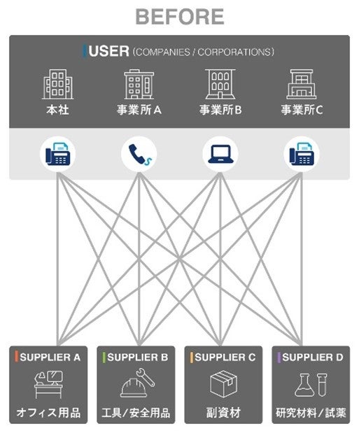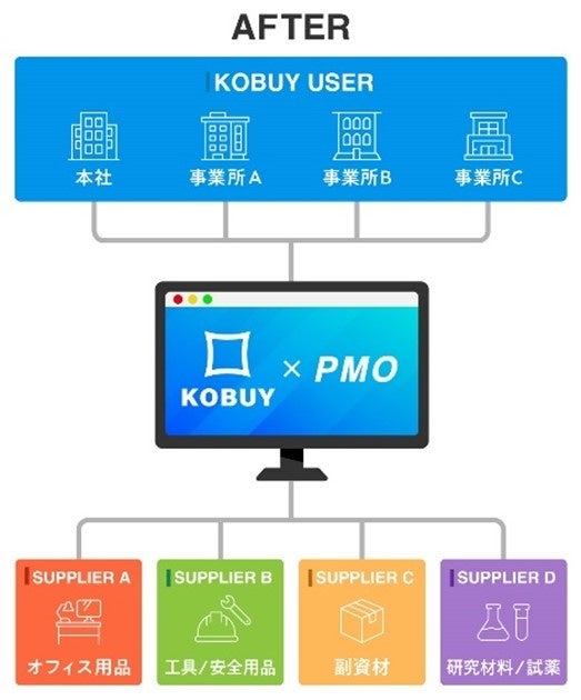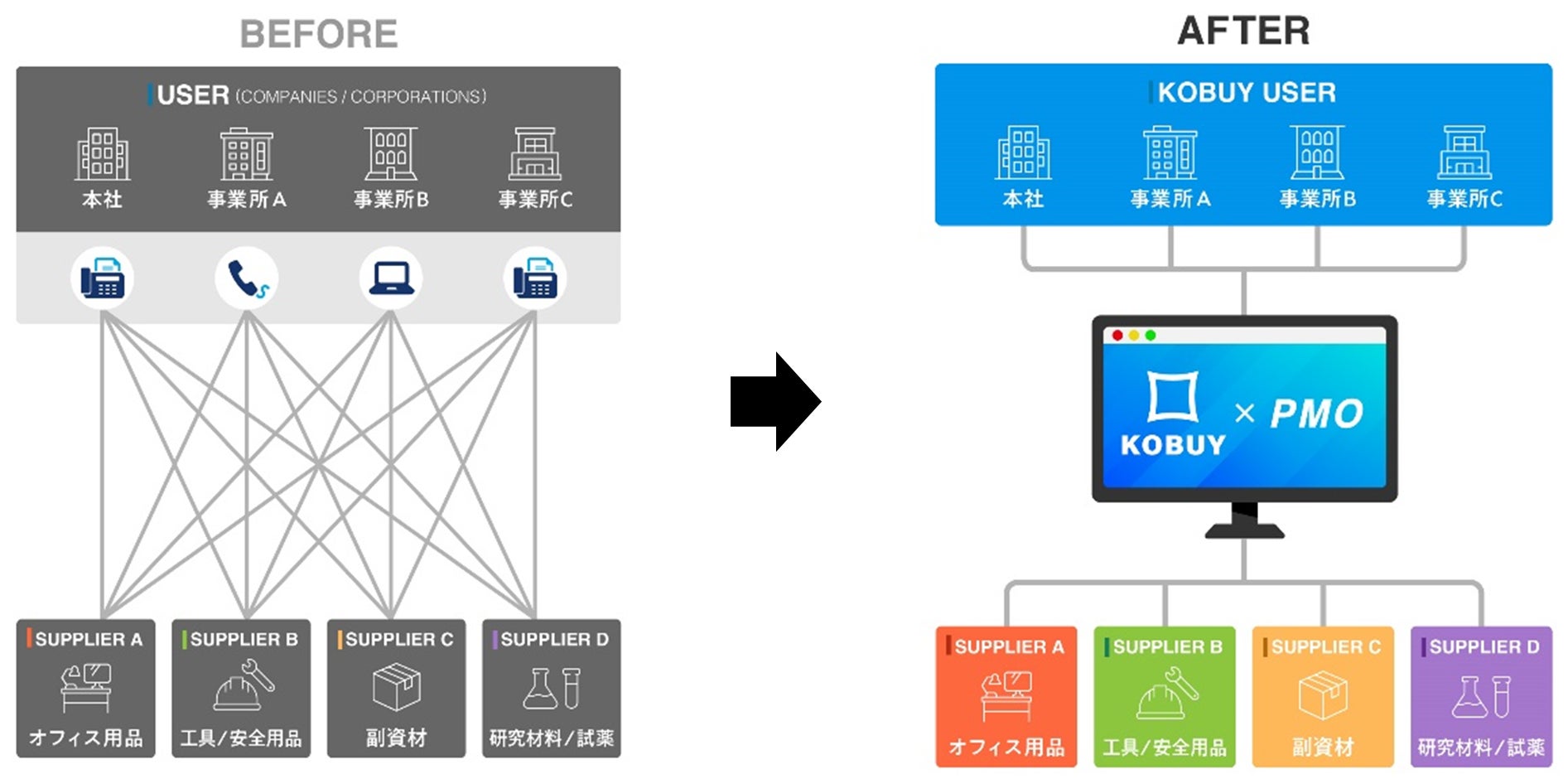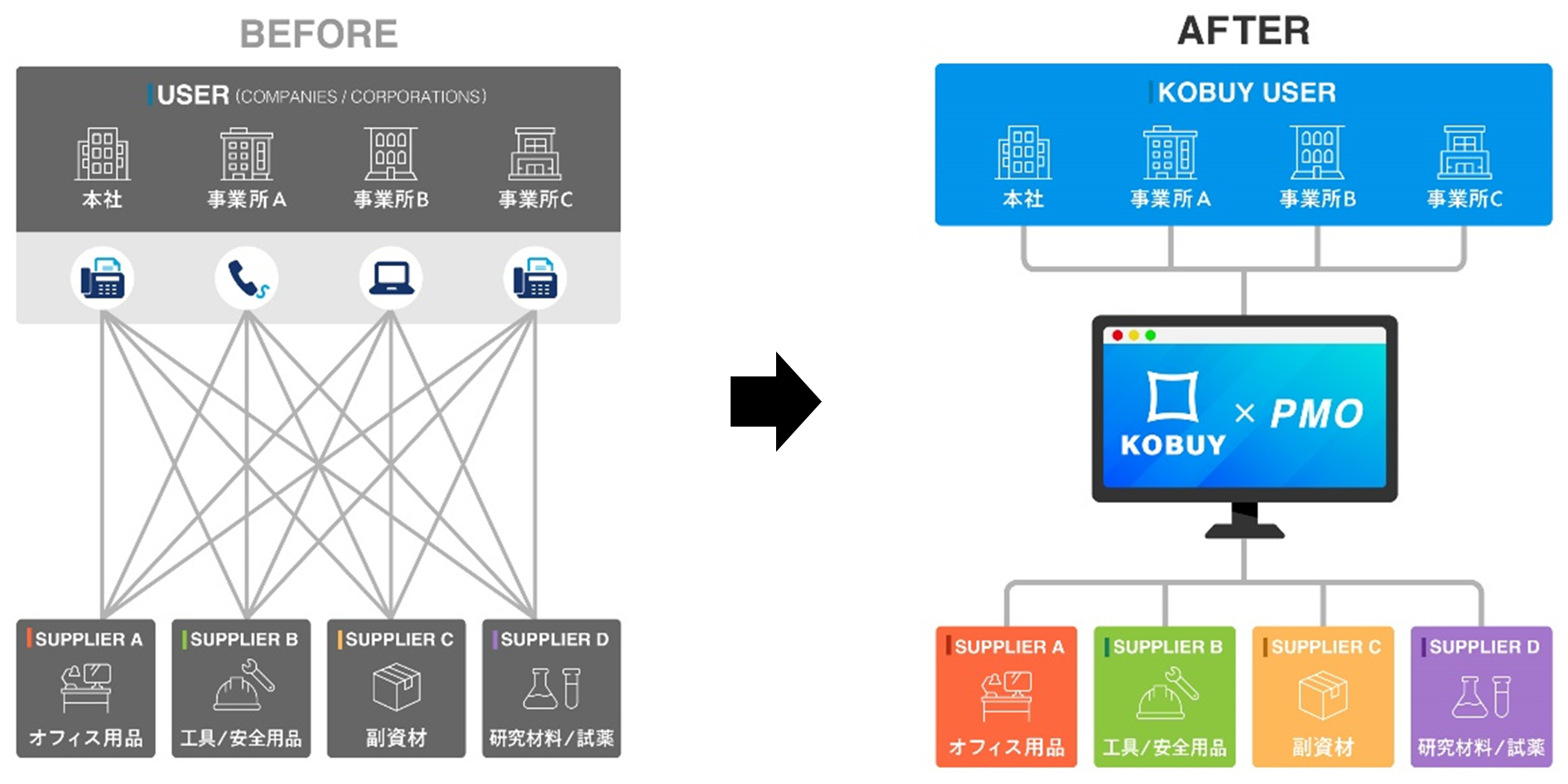 KOBUY (コーバイ) は様々なサプライヤー企業が商品を販売し、ユーザー企業が商品を購入するプラットフォームです。