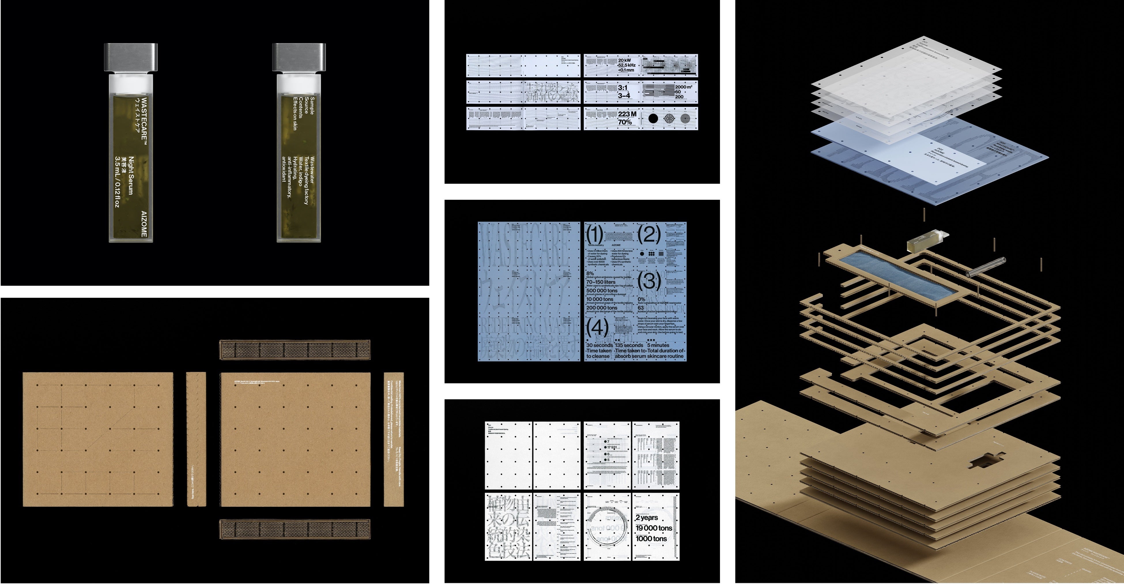 WASTECARE™キット全体のデザインコンセプトは「Visualization of Time - 時の可視化」です。藍染がもつ“時間をかけてゆっくりと空気に触れさせることで、少しずつ美しい藍色へと変わっていく”特徴をデザインに落とし込み、時と共にうつろう繊細なインディゴブルーのグラデーションを表現。キットを開封していくだけで、AIZOMEの染色の流れを追体験できる仕組みを仕掛けるなど、人にも地球にもやさしい、新時代の染色技法の素晴らしさを体感いただける設計となっています。