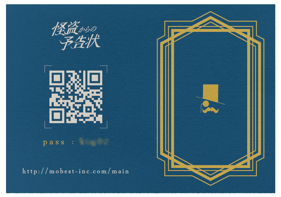 実際の商品となる怪盗からの予告状(⼀枚の紙)には、犯⾏声明と共に「⼆次元バーコード」と「パスワード」が記載されています。