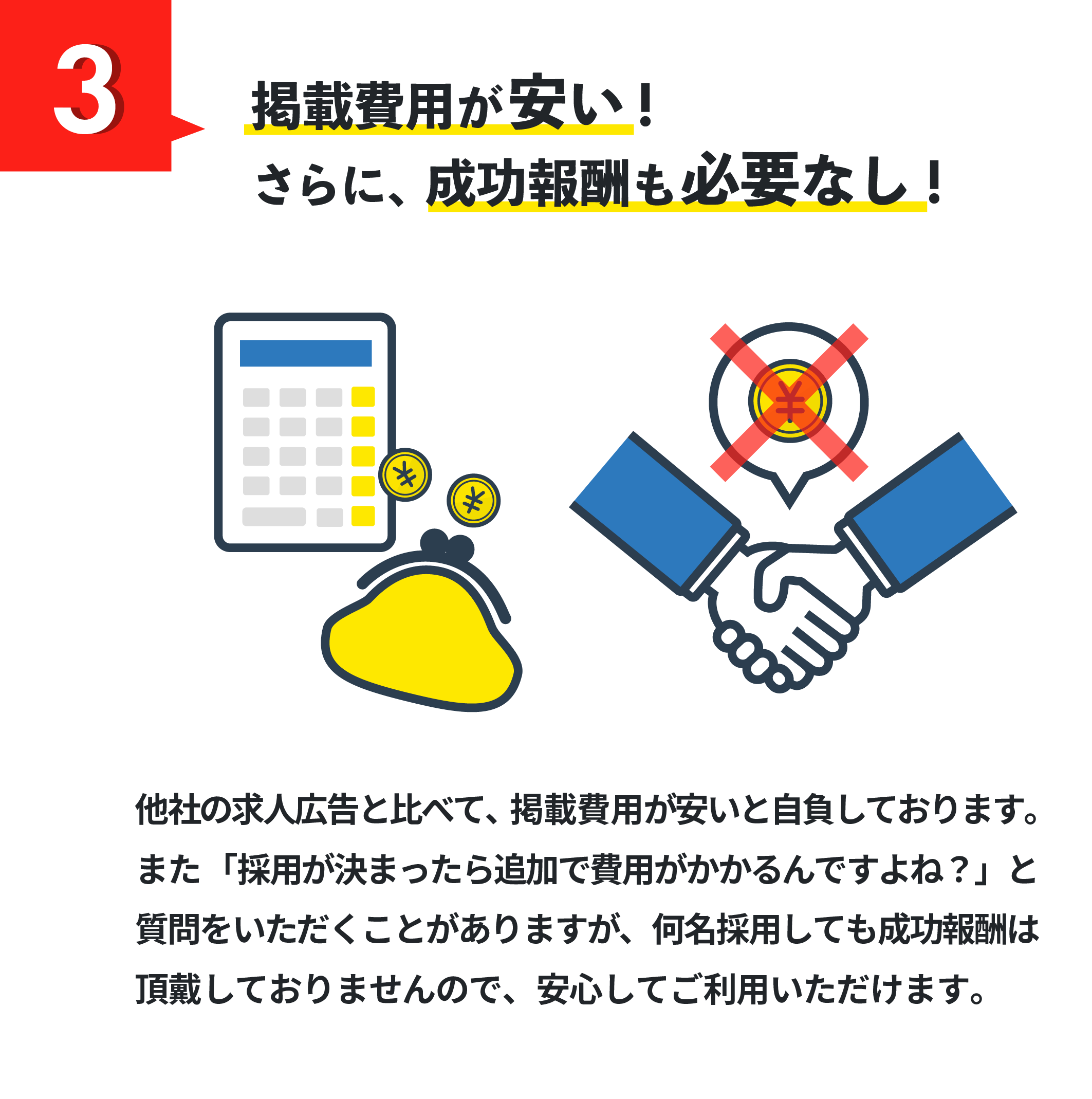特徴【3】低価格!初期費用、採用後の紹介料や成功報酬など、追加費用一切なし