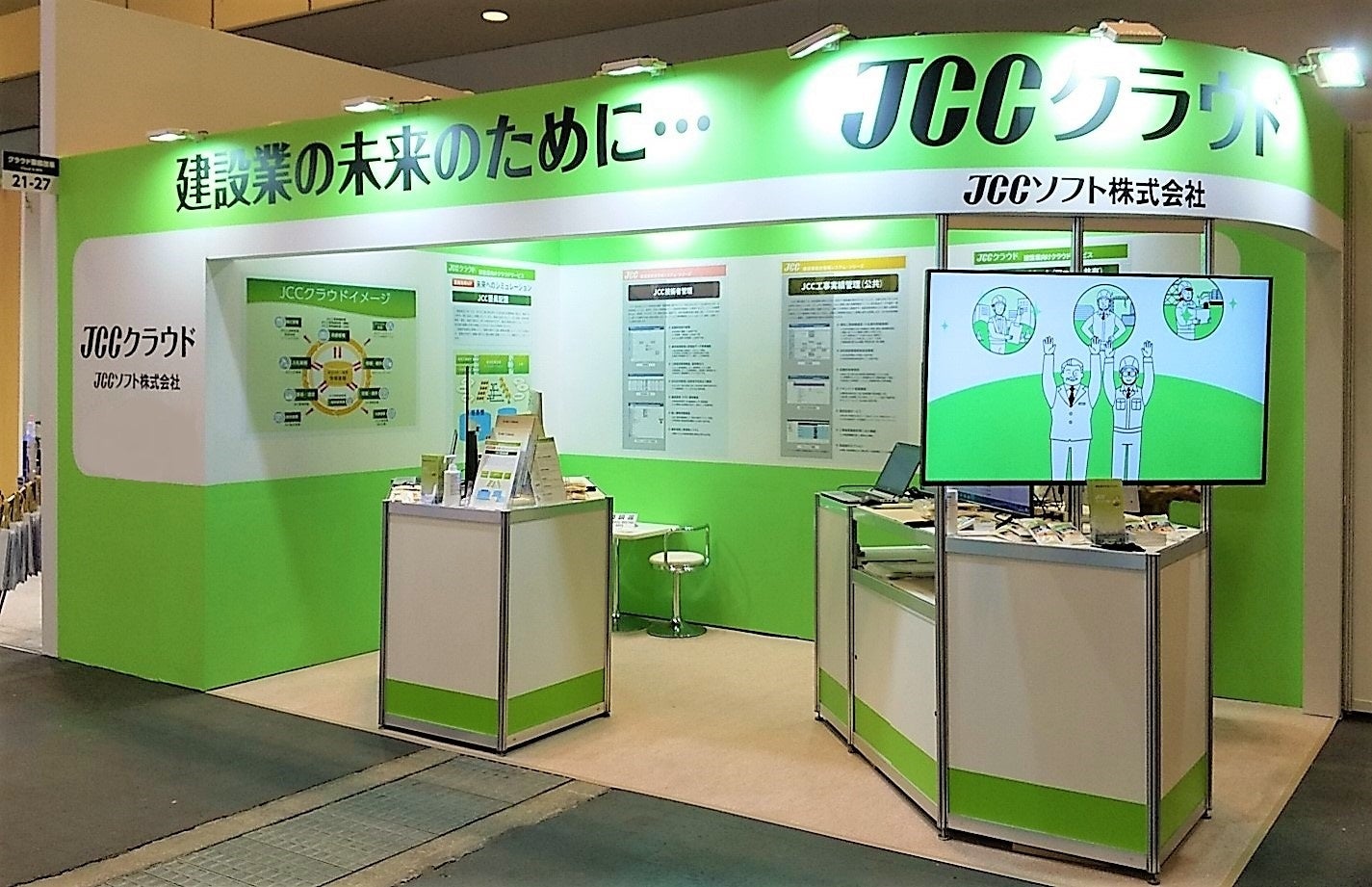 ブースでは、現在、好評を頂いております建設業向けクラウドサービス「JCCクラウド」をデモ画面にて紹介しながらご提案させていただき、弊社の技術力を展示します。