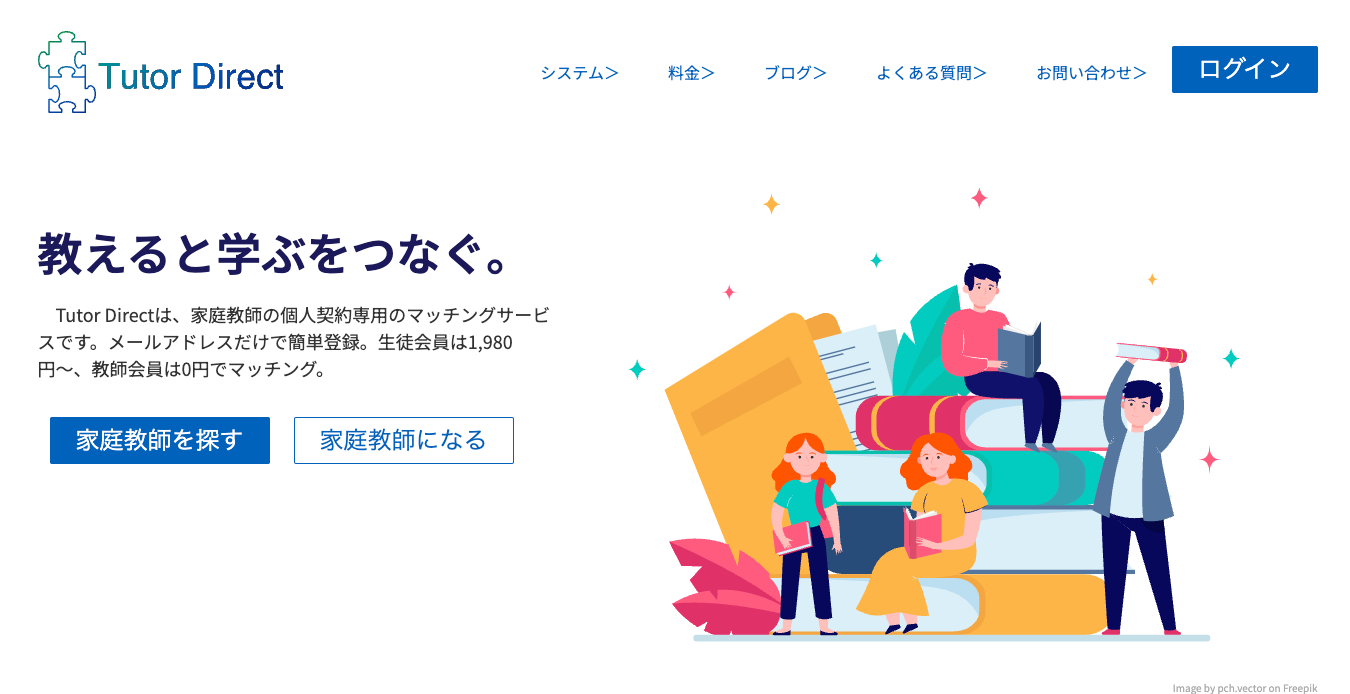 TutorDirectは、家庭教師を雇いたいご家庭さま(生徒会員)と、家庭教師として働きたい個人(教師会員)をマッチングするウェブサービスです。