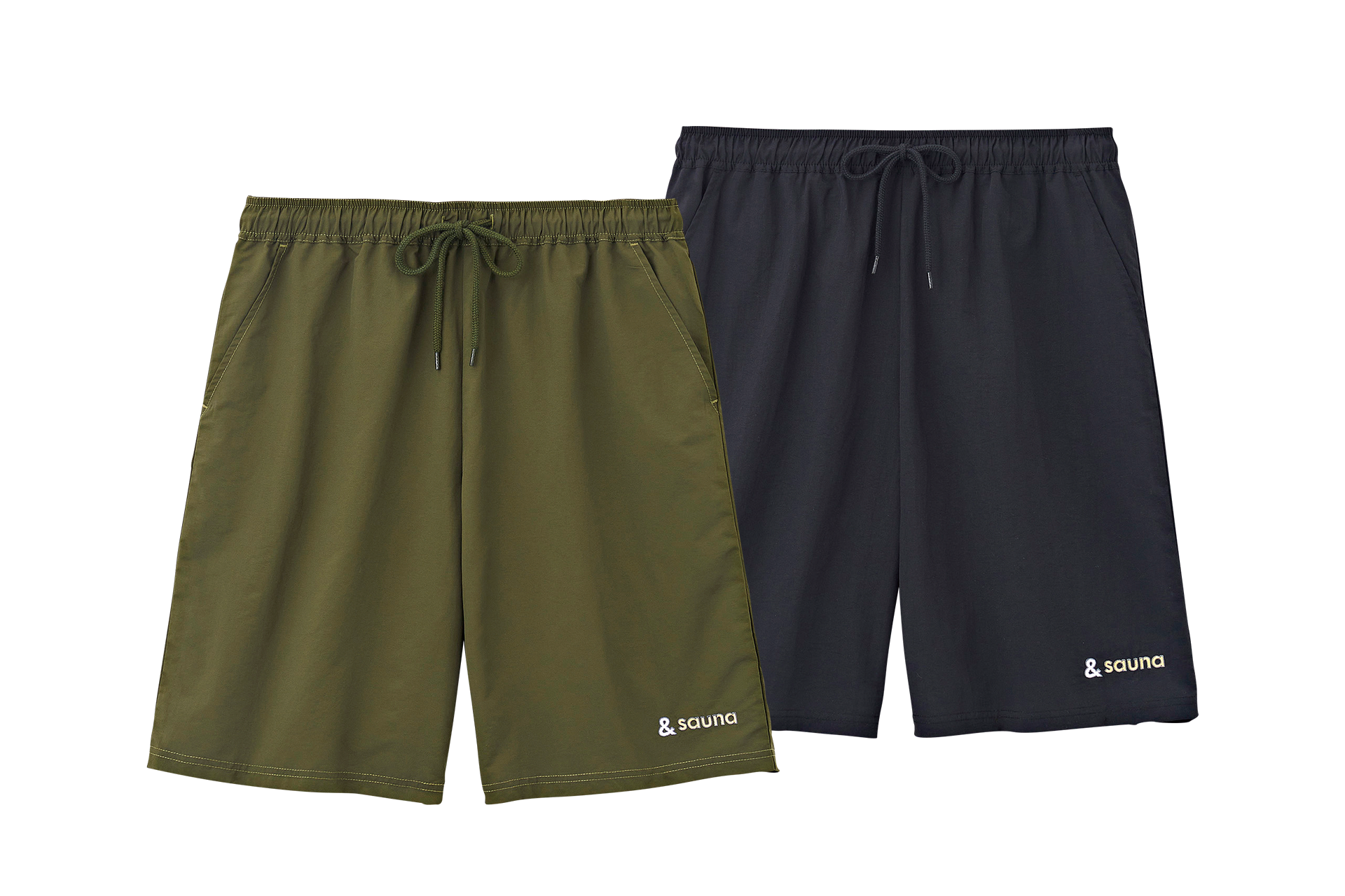 水陸両用で使用可能なナイロン100%の「ハーフパンツ」は全2色展開、デイリーユースは勿論、アウトドアサウナやキャンプなど夏のレジャーにもピッタリ。キーホルダーがセットになったTシャツは全2色展開。&saunaキャラクターの「さくまくん」がバックプリントにデザインされています。