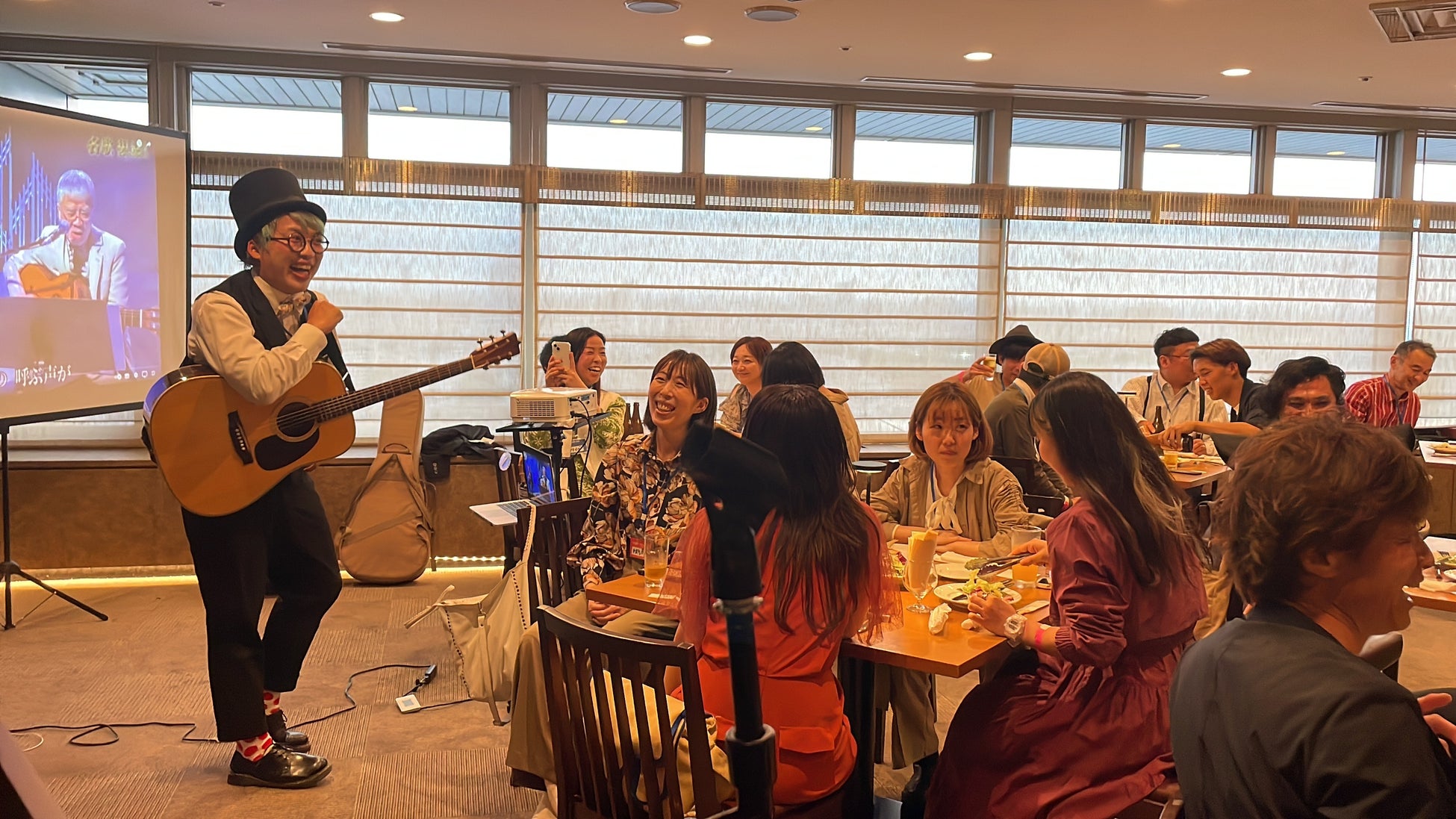 また総会後半には実際に流しとして活躍しているアーティストである、タクトくん(ギター流し)、村男(ギター流し)、MAJICIAN HIROSHI(マジック)による日本トップクラスのパフォーマンスが披露され、会場は熱気に包まれた。