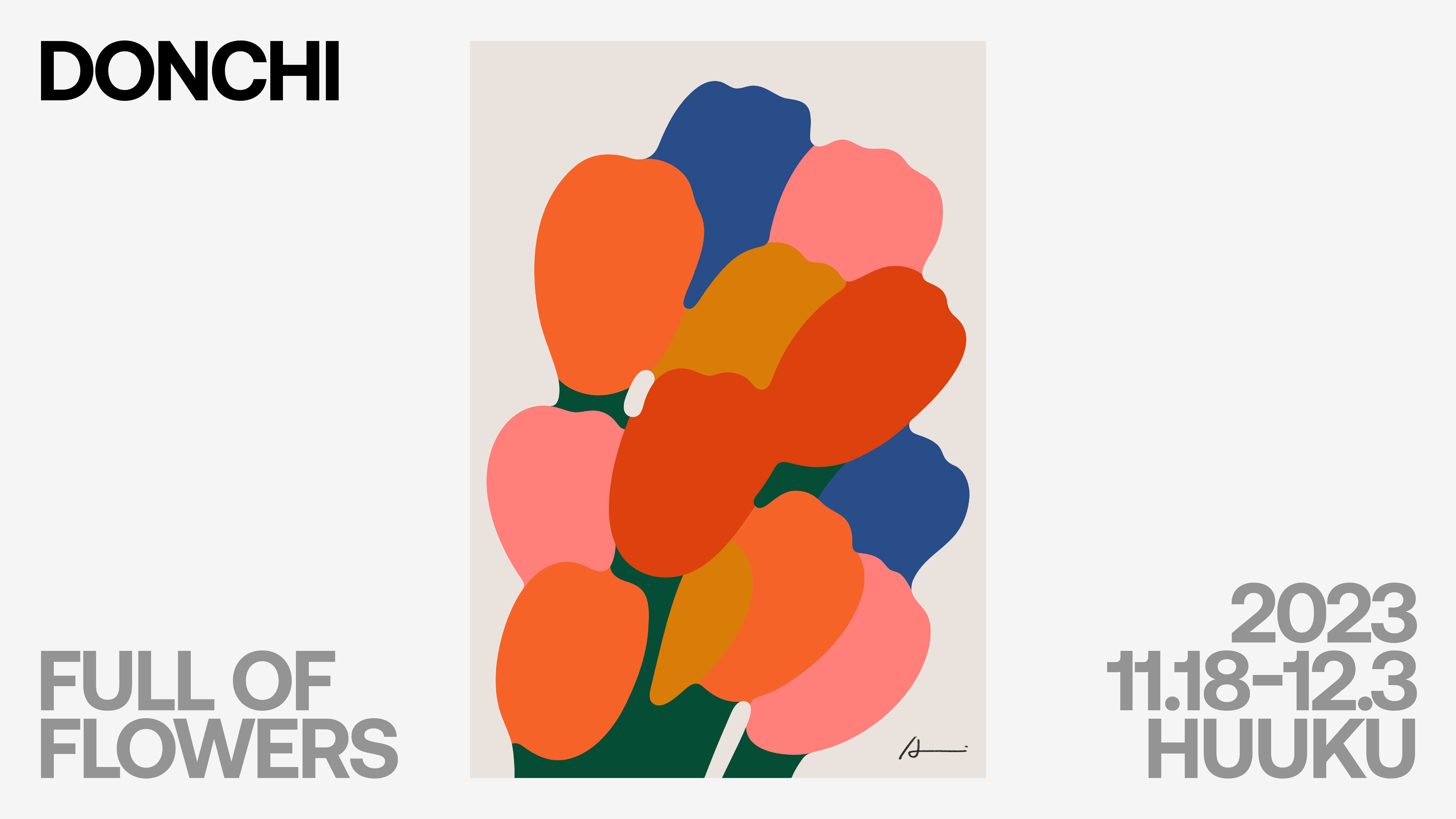 今回の展示会場であるHUUKUは、独自の審美眼でセレクトしたファッションアイテムを取り扱うコンテンポラリーショップです。ファッションもまた花と同じように、気持ちを軽やかにし、肯定する力があります。Donchi初の中部エリアでの個展「FULL OF FLOWERS」、ポップでカラフルな花の世界を是非お楽しみください。
