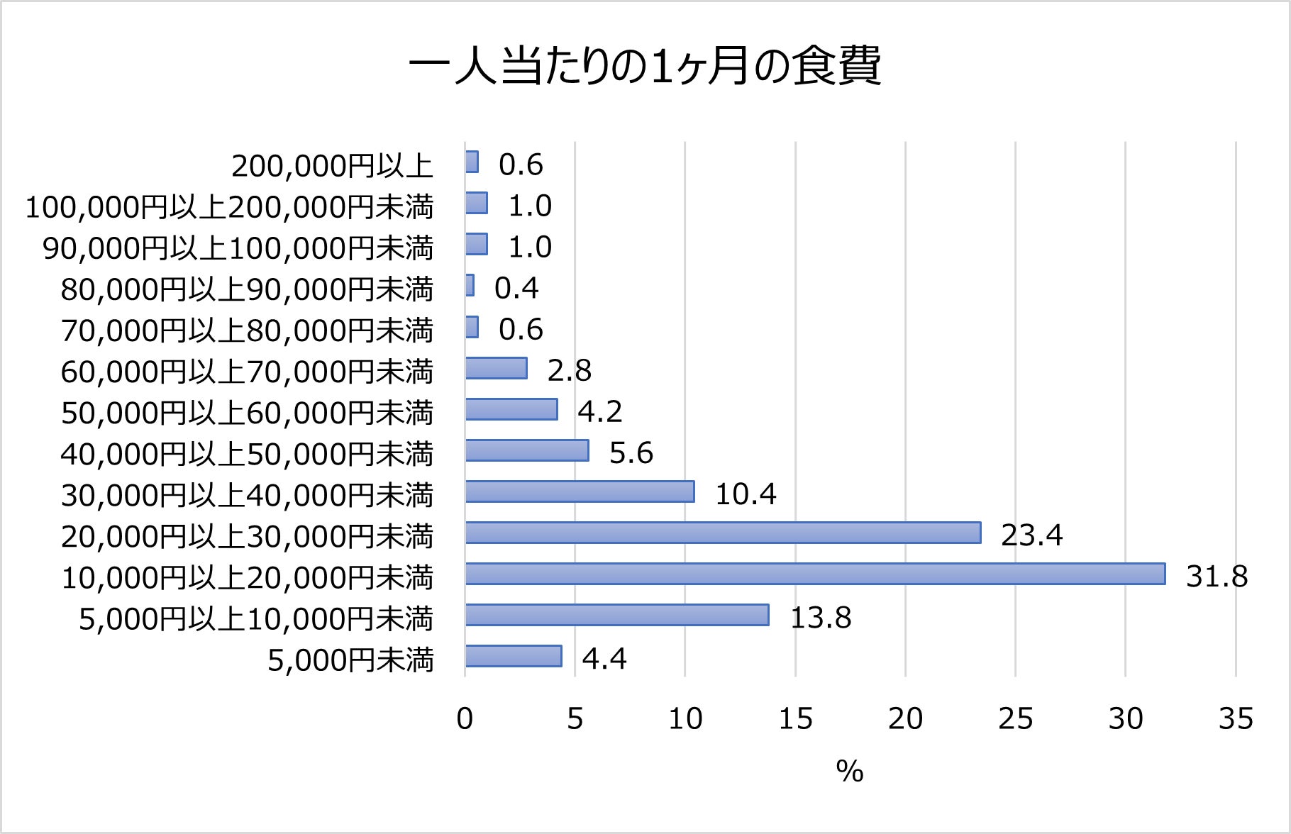 一人当たりの1か月の食費「1万円以上2万円未満」と回答した人が最多