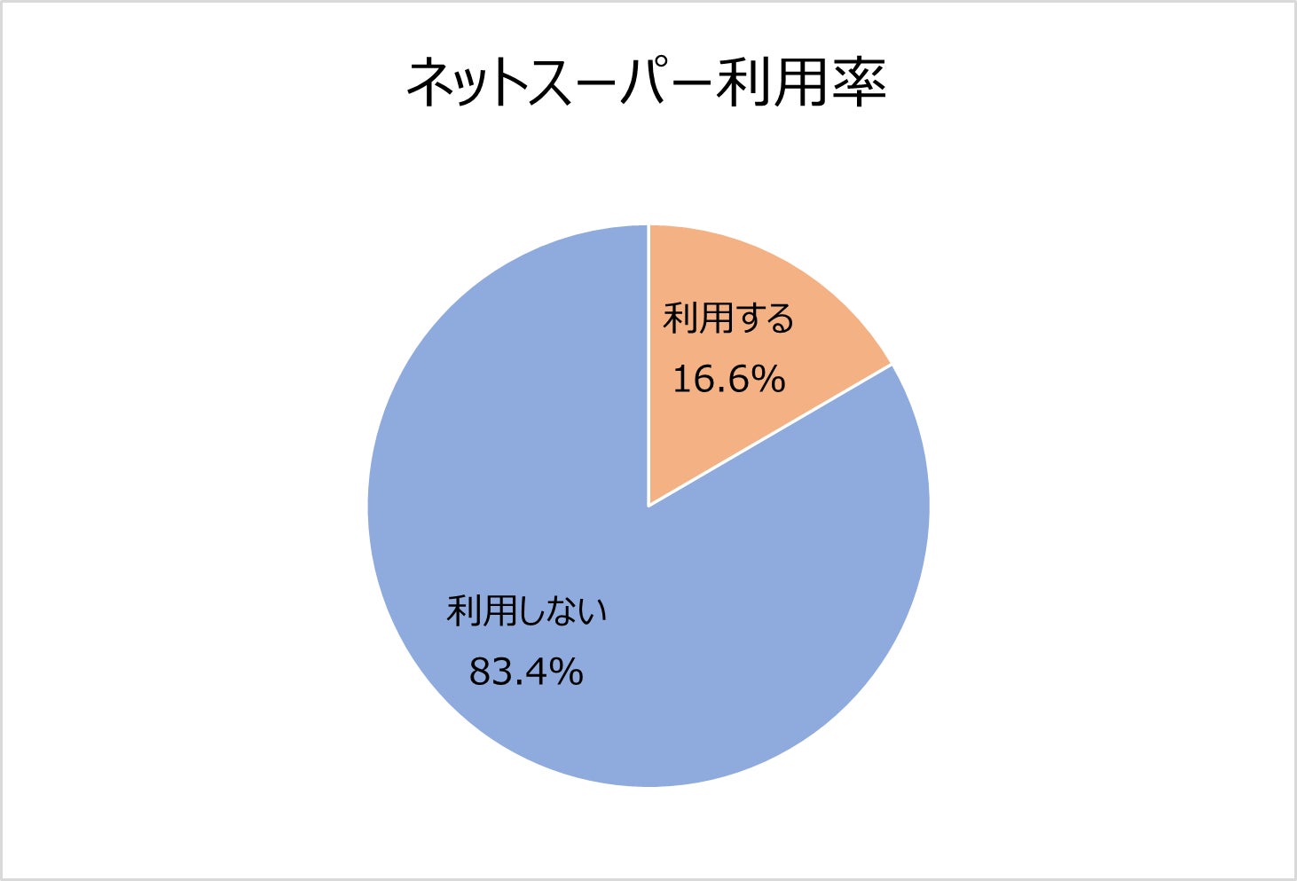 ネットスーパーは、インターネットで食品などの注文を受け付け、既存のスーパーマーケット店舗や店舗を持たない宅配専門の業者が、自宅まで商品を配達するサービスです。ネットスーパーについて、定期的に利用するか質問したところ、結果は「利用する(16.6%)」と回答した人は2割を下回りました。ネット通販とともに、注目されてきたネットスーパーですが、「利用しない(83.4%)」人が多数派という結果に。スーパーにおいては、実店舗で買い物する主婦・主夫がまだまだ多いということが明らかになりました。