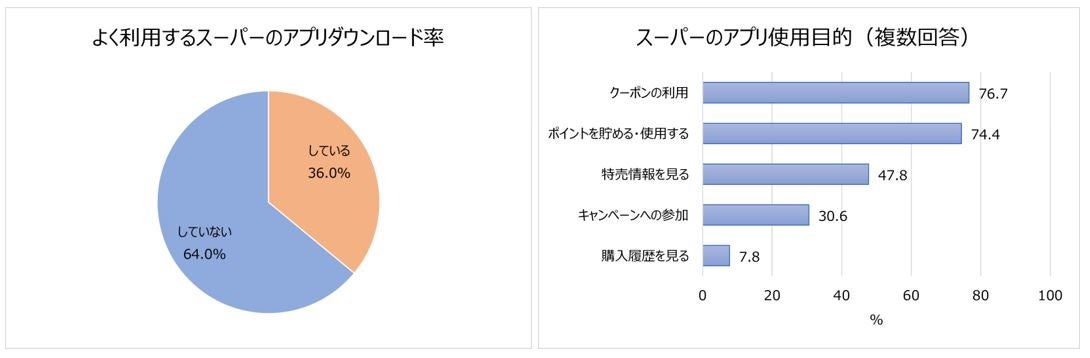 利用するスーパーのアプリダウンロード率は36%。目的は「クーポン利用」が最多