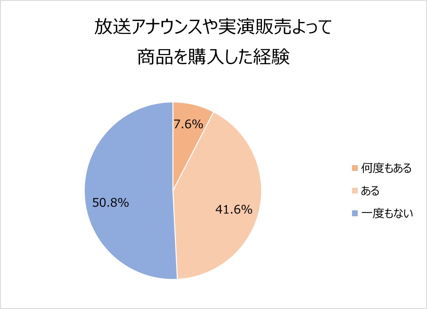 約半数は、放送アナウンスや実演販売で商品を購入した経験あり!