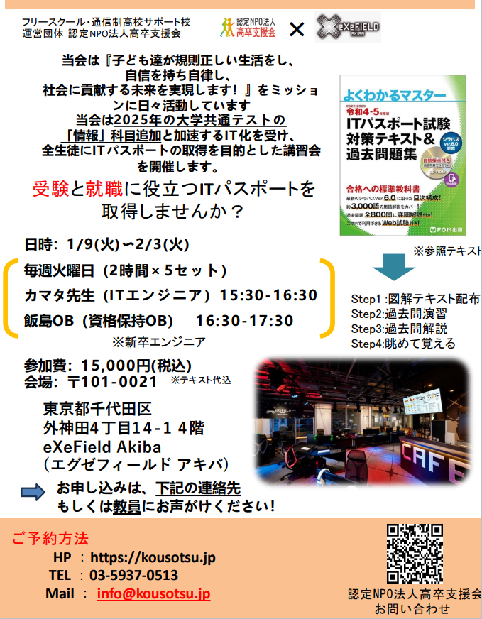 高校卒業に関わることに強みを持っていることもあり、今考えているのは、小学生への支援連携、孤立しがちな若者への支援、ICT教育です。