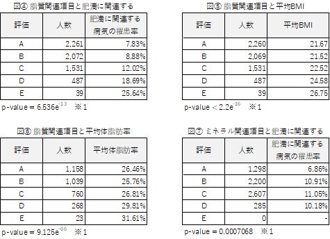 肥満に由来する病気(※2)に関しては「ミネラル関連項目」においても関連が認められた。(図⑦)