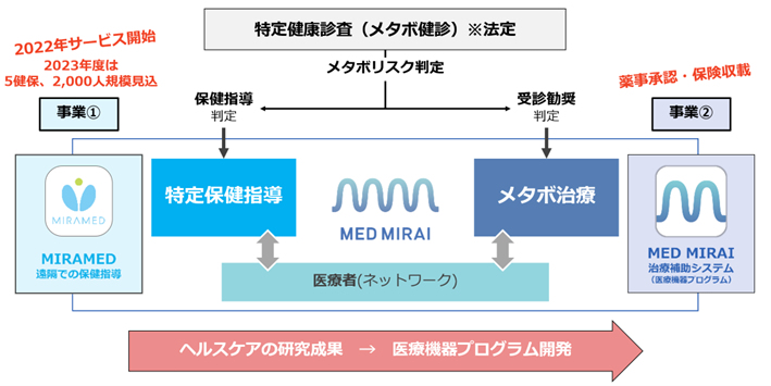 Personal medical care in your hand をミッションとするメドミライは、メタボ治療補助用医療機器プログラム「MED MIRAI」の開発や健康診断データ等の解析から数年後のメタボリスクを予測及び可視化し行動変容につなげるアプリ「MIRAMED」を活用した遠隔特定保健指導を展開しており、今回の調達を通じて事業開発を加速していきます。
