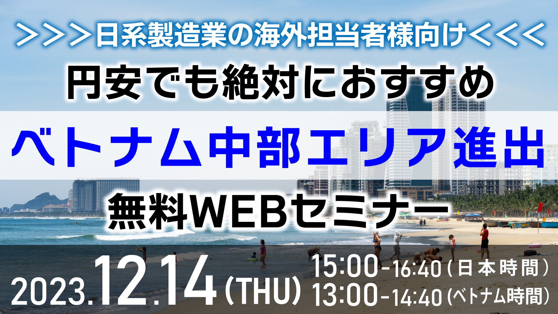 【日系製造業の海外担当者様向け】「円安でも絶対におすすめ! ベトナム中部エリア進出」無料WEBセミナー