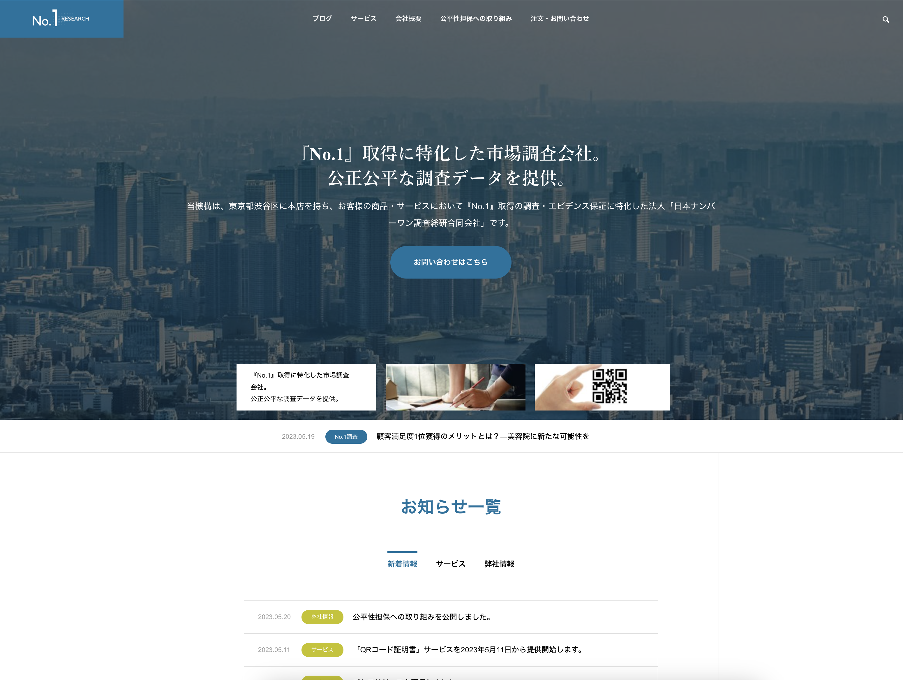 日本ナンバーワン調査総研は、No.1調査に特化した渋谷区のリサーチ会社です。