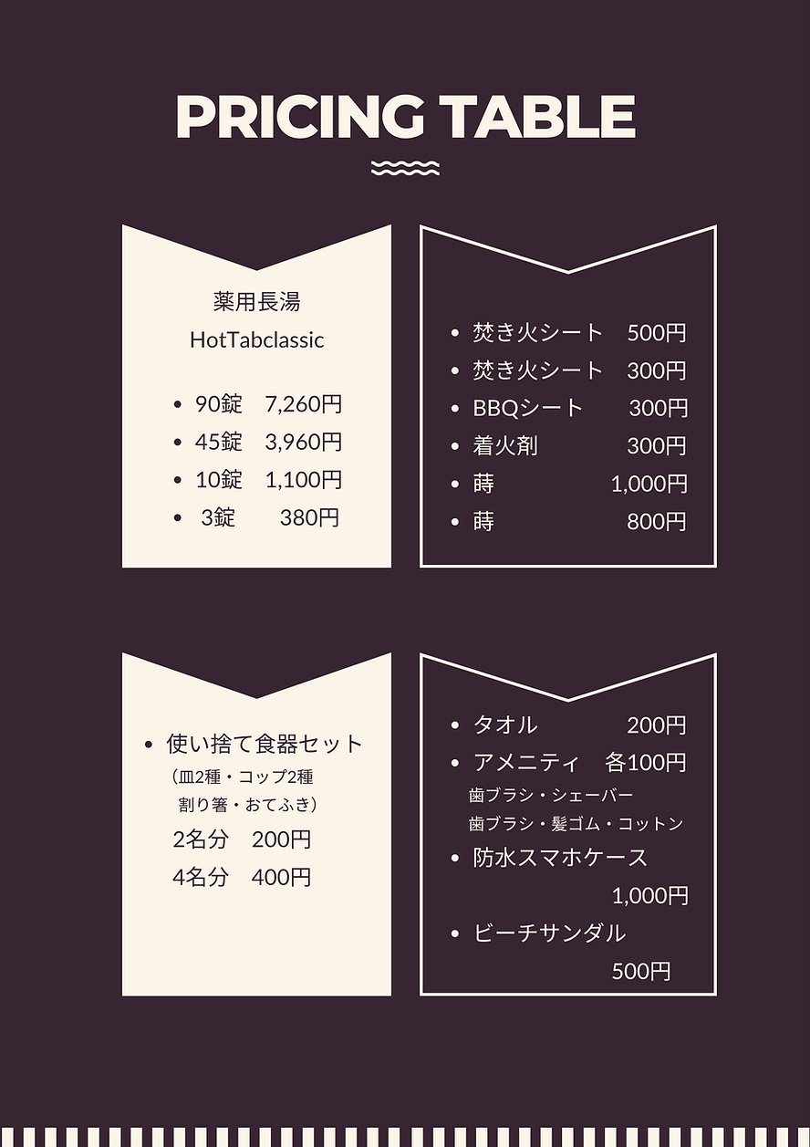 ▶販売品:蒔、焚き火シート、着火剤、食器セット、タオル、アメニティなど。