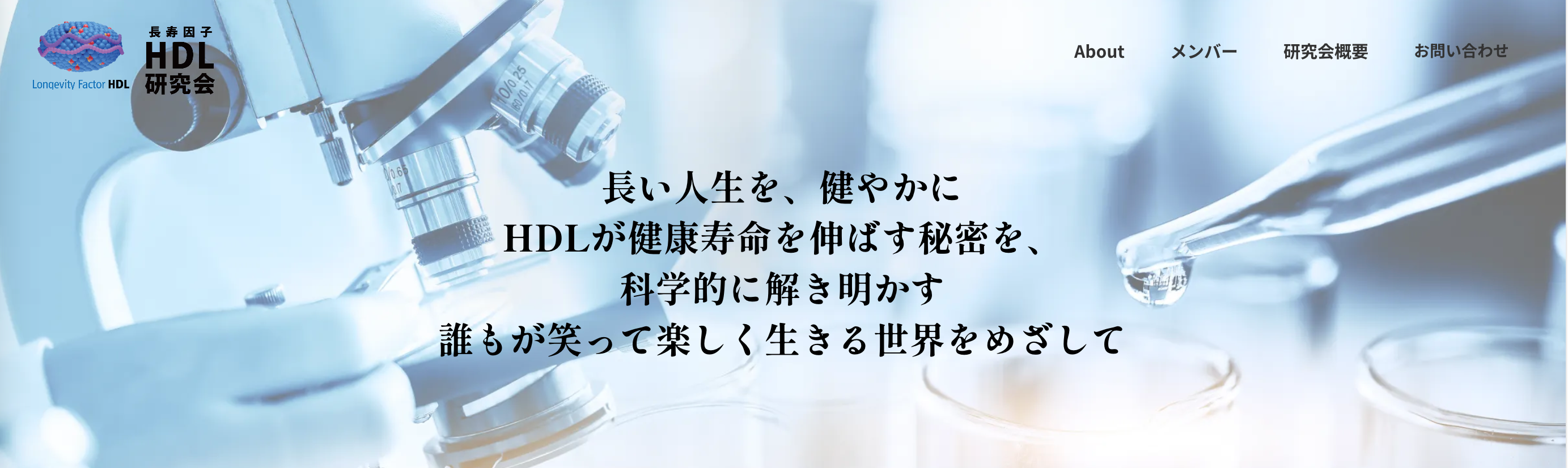 長寿因子 HDL研究会は、多くの疾患の引き金とされる“血管系の疾患”に深く影響する「善玉コレステロール(以下、HDL)」の重要性を社会へ啓蒙する研究会です。「HDLの正しい知識を広め、人々の健康寿命に役立てる」ことを目指し、シンポジウム開催、特設サイトの運営、論文・コラム・研究レポートの発表やSNSでの情報発信などを多角的に展開しています。