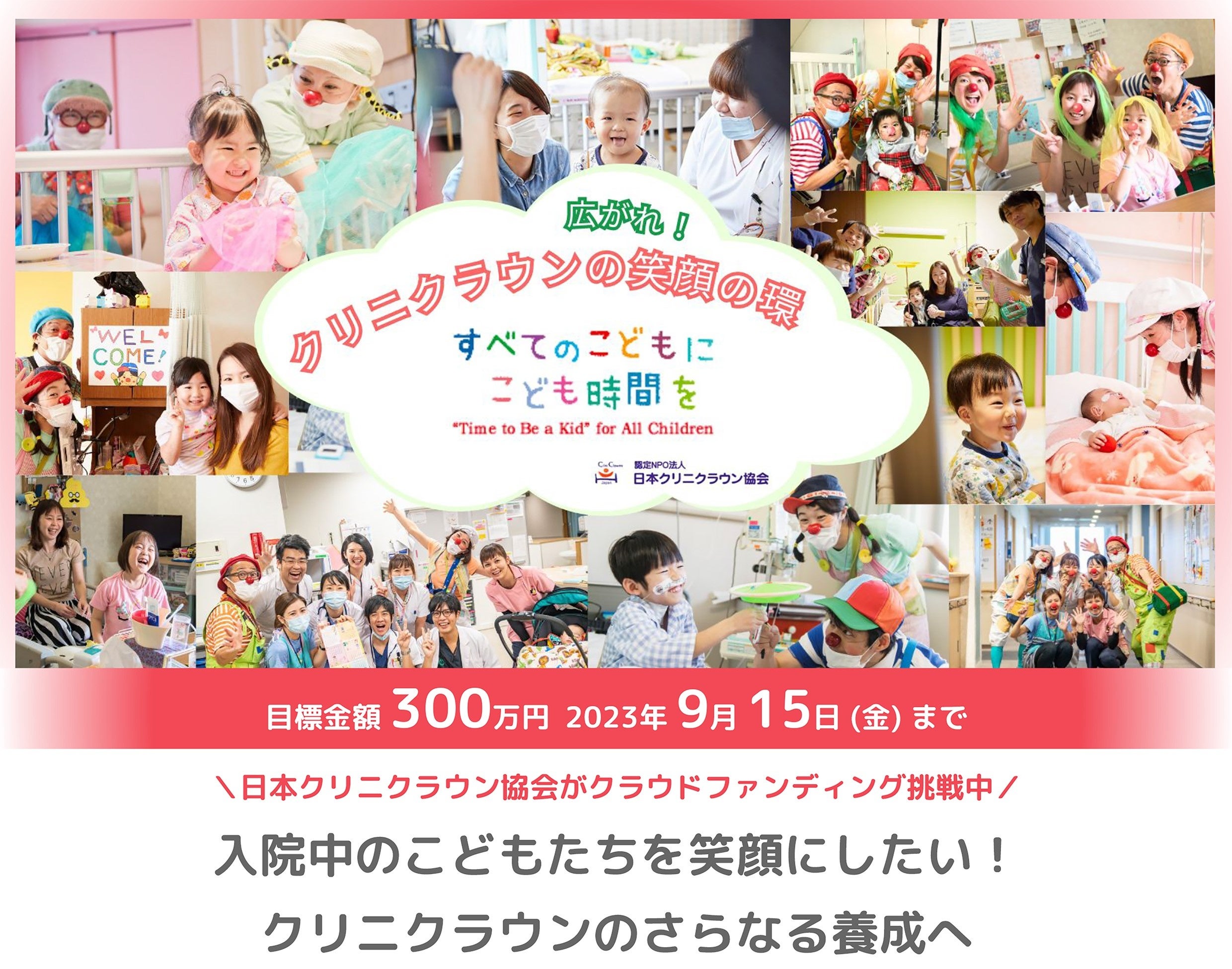 また、クラウドファンディングサービス「READYFOR」にて、「入院中のこどもたちを笑顔にしたい!クリニクラウンのさらなる養成へ」を公開しました。300万円を目標に、本日2023年8月7日(月)から9月15日(金)まで支援を募ります。