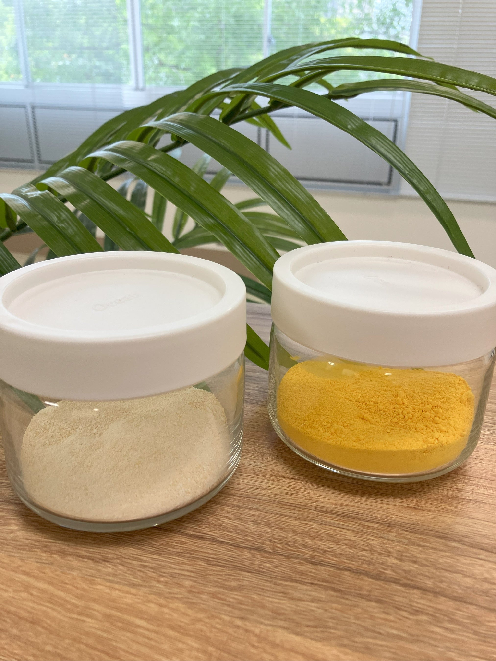 バイオマスCO2吸収材は白色の粉末状の材料で、添加剤として利用可