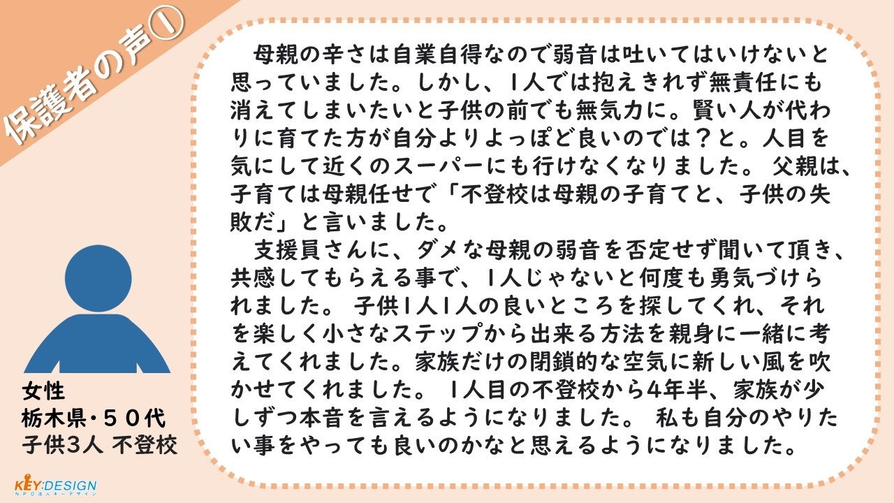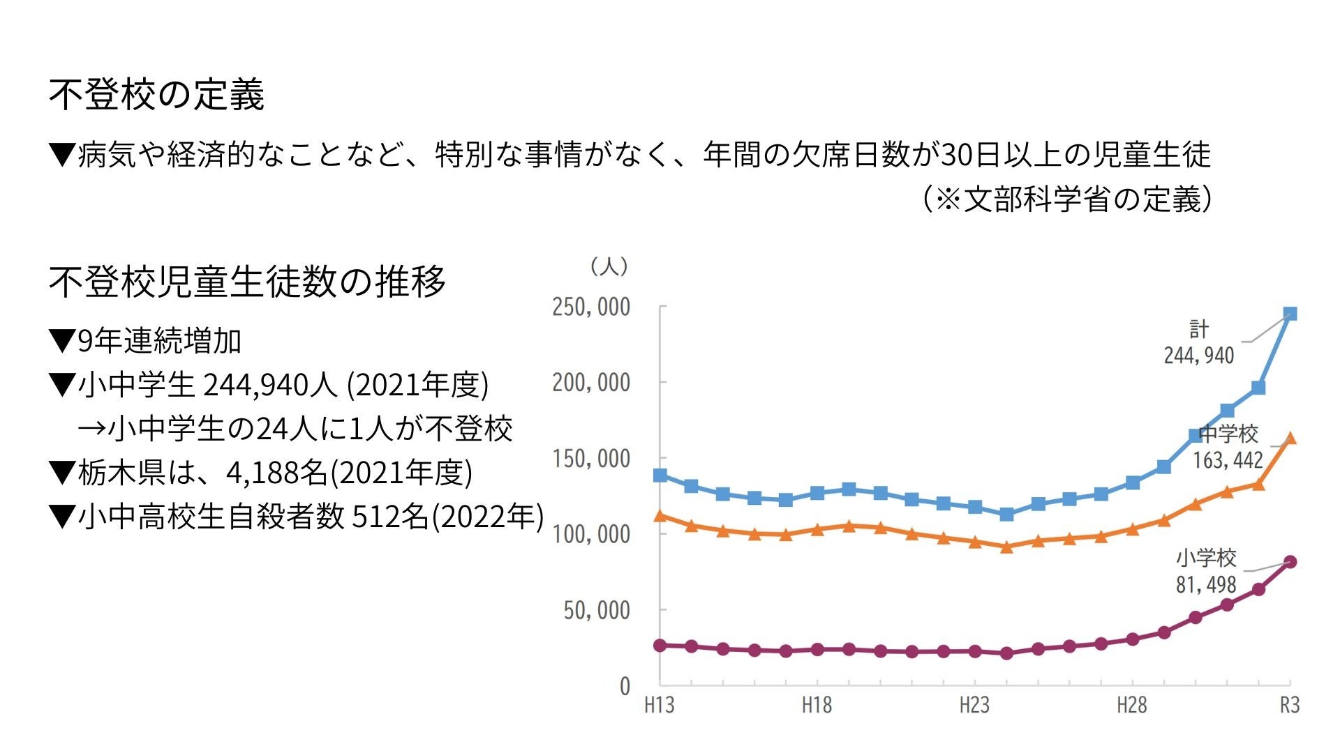 小中学生の24人に1人が不登校になっている現代。親の24人に1人が、不登校の子どもを支える親ということです。