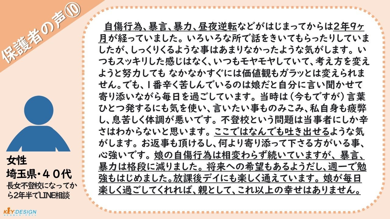 子どもの自死がもっとも多くなる9月1日。中学生の20人に1人が不登校の今、保護者へのLINE相談支援の拡充により、家が子どもの逃げ場になるよう、環境を整えるお手伝いをします。