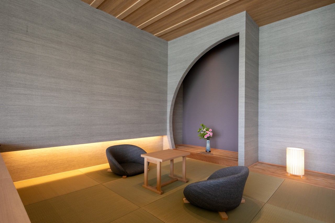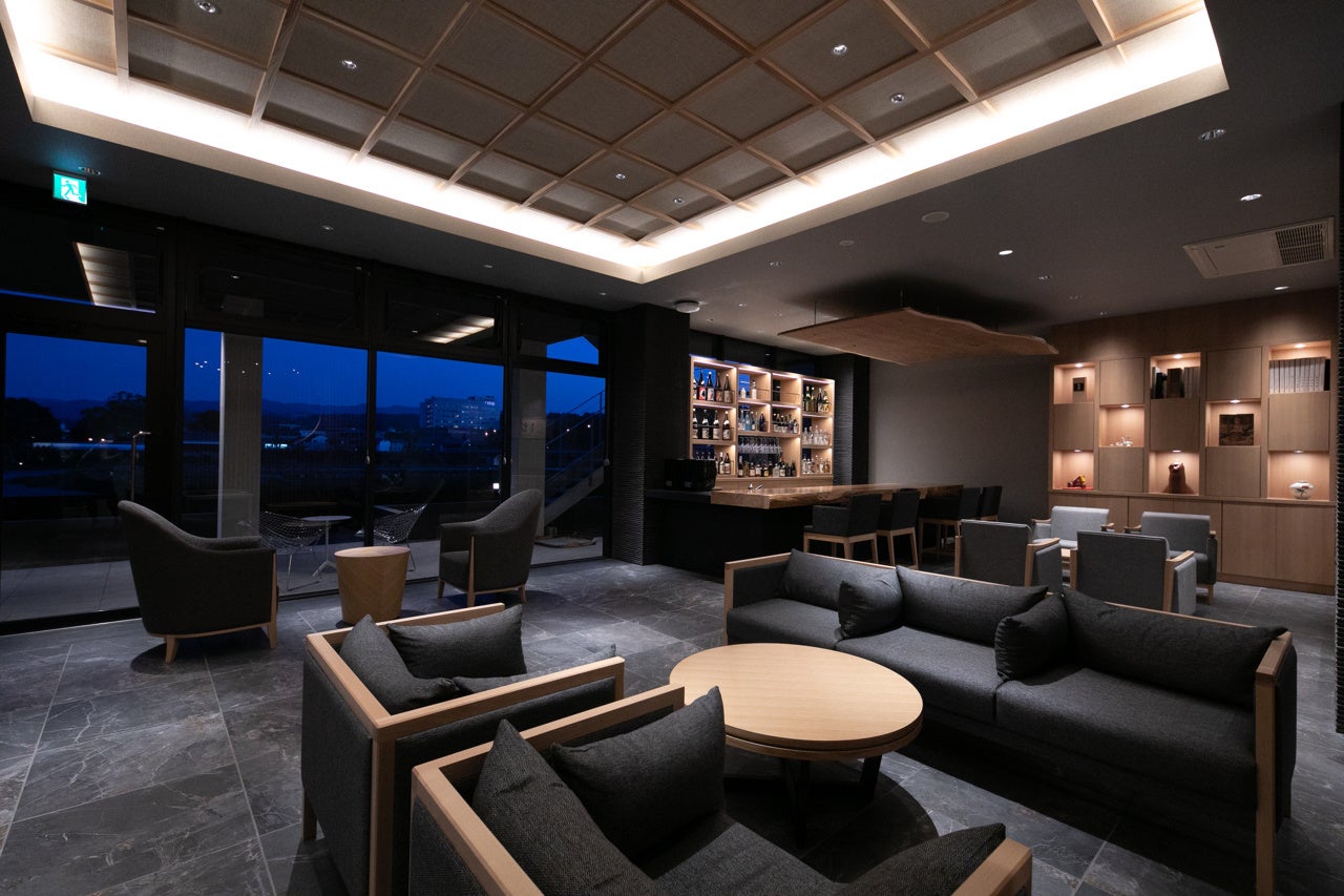 客室は人吉球磨で最も美しく咲く花の名前を冠した3室のスイートをはじめ、この地域で見られる鳥の名前を冠したセミスイート5室、スーペリアルーム1室。イノベーティブ・キュイジーヌを提供するレストラン「CRESCENT/クレセント」や30種類以上の球磨焼酎を取り揃えたバー、大浴場、家族風呂、足湯、オリジナルの米焼酎「女将桜」を取り扱うショップ、キッズスペースなどが新設されました。また、館内随所には人吉城址を象徴する三日月のモチーフが施されています。