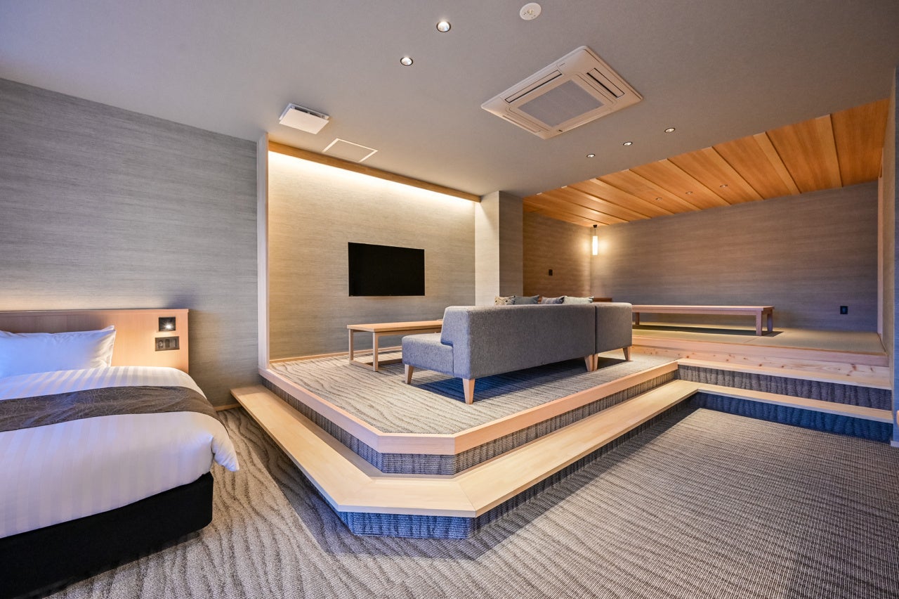 - OORURI(310号室):57.5㎡、定員2名、和空間と浴室にイタリア製バスタブを設置