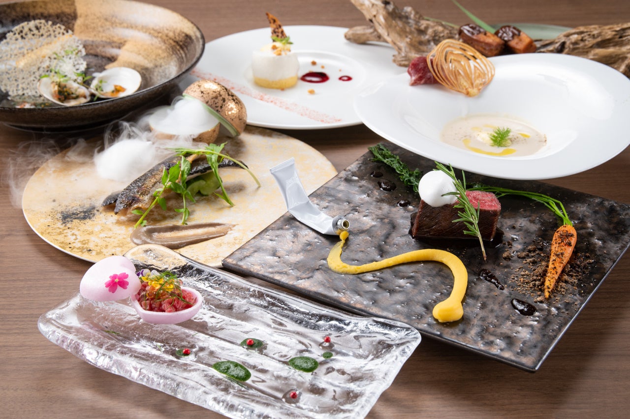 提供される料理は、フレンチを基調としつつもジャンルにとらわれない“イノベーティブ・キュイージーヌ”。球磨川の鮎やたもぎ茸、きくらげ、山菜など、地元や九州の食材を中心に使用