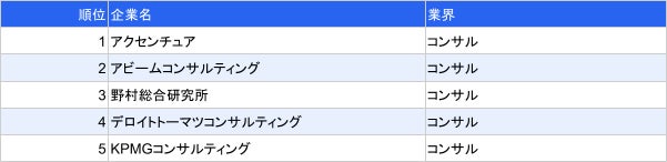 コンサル業界人気ランキング