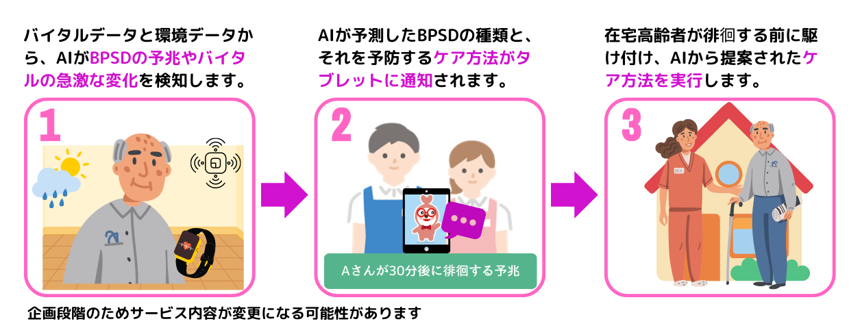在宅等における認知症患者のBPSDをAIで予測し、適切なケアを実行することが可能に