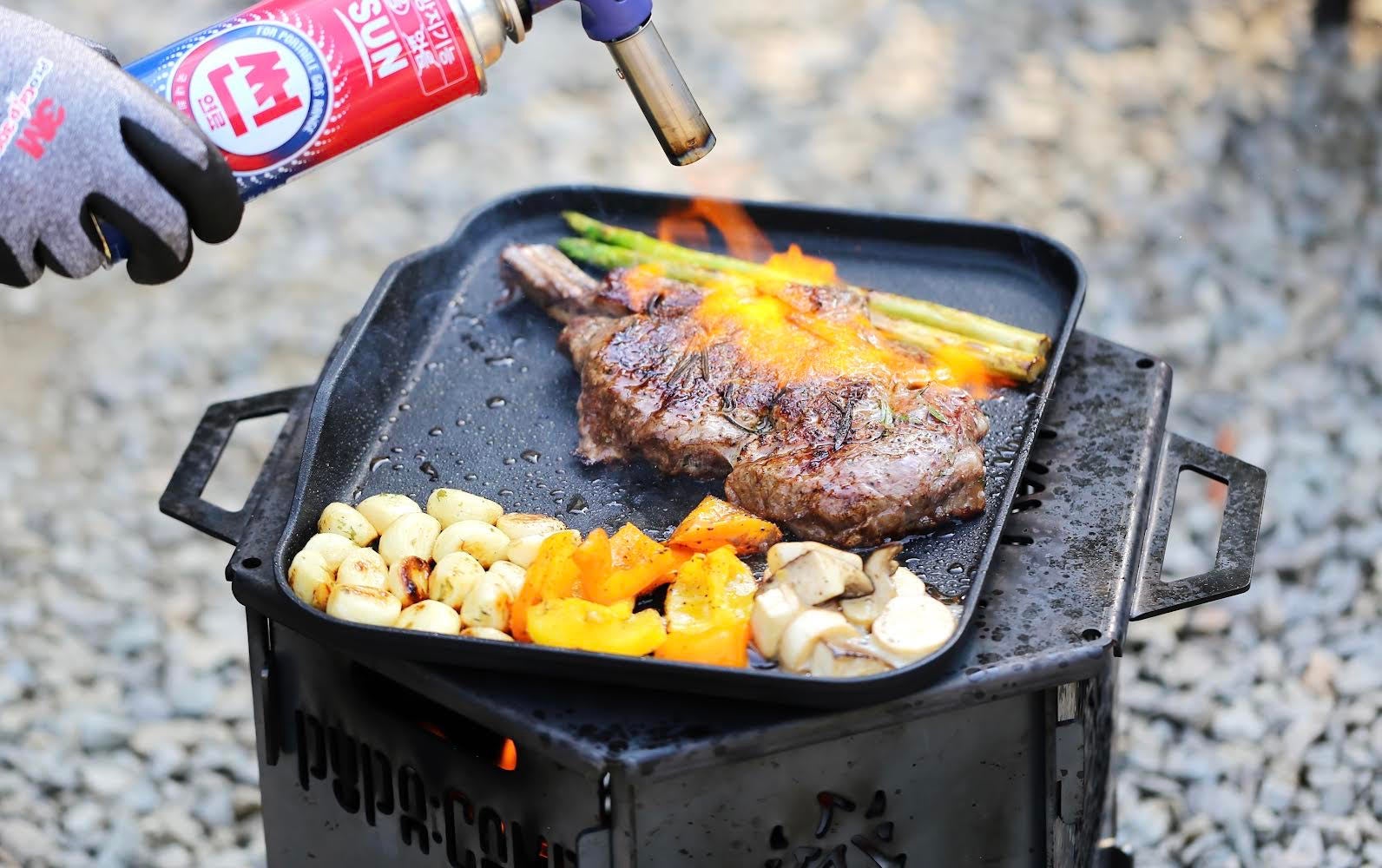 厚みと軽さと取っ手が取り外せること、油を塗って保管しなくていいこと、ガスコンロでも使えそうなこと、キャンプの朝、4人分の目玉焼きを焼きながら、真ん中でウインナーも焼いたりできそうです!