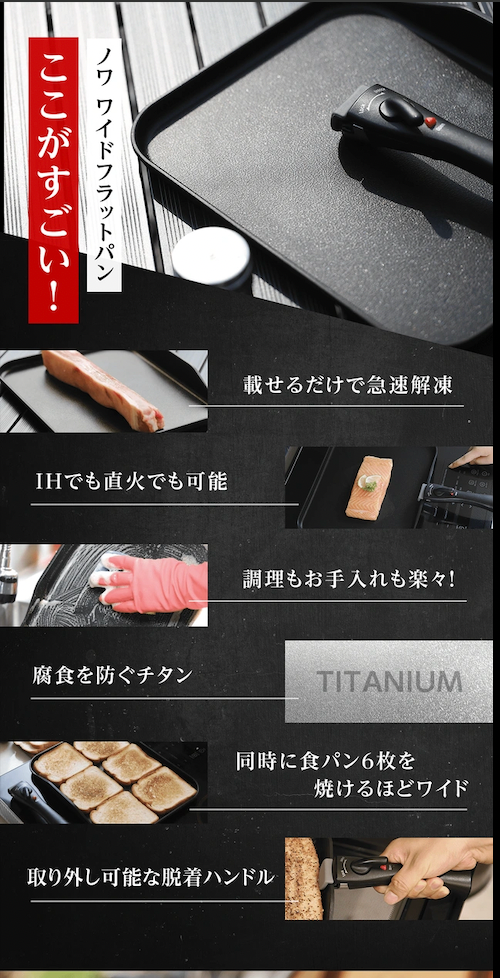 急速解凍機能付でクッキングシーンで大活躍すること間違いなしのワイドかつフラットの四角いフライパンが新登場