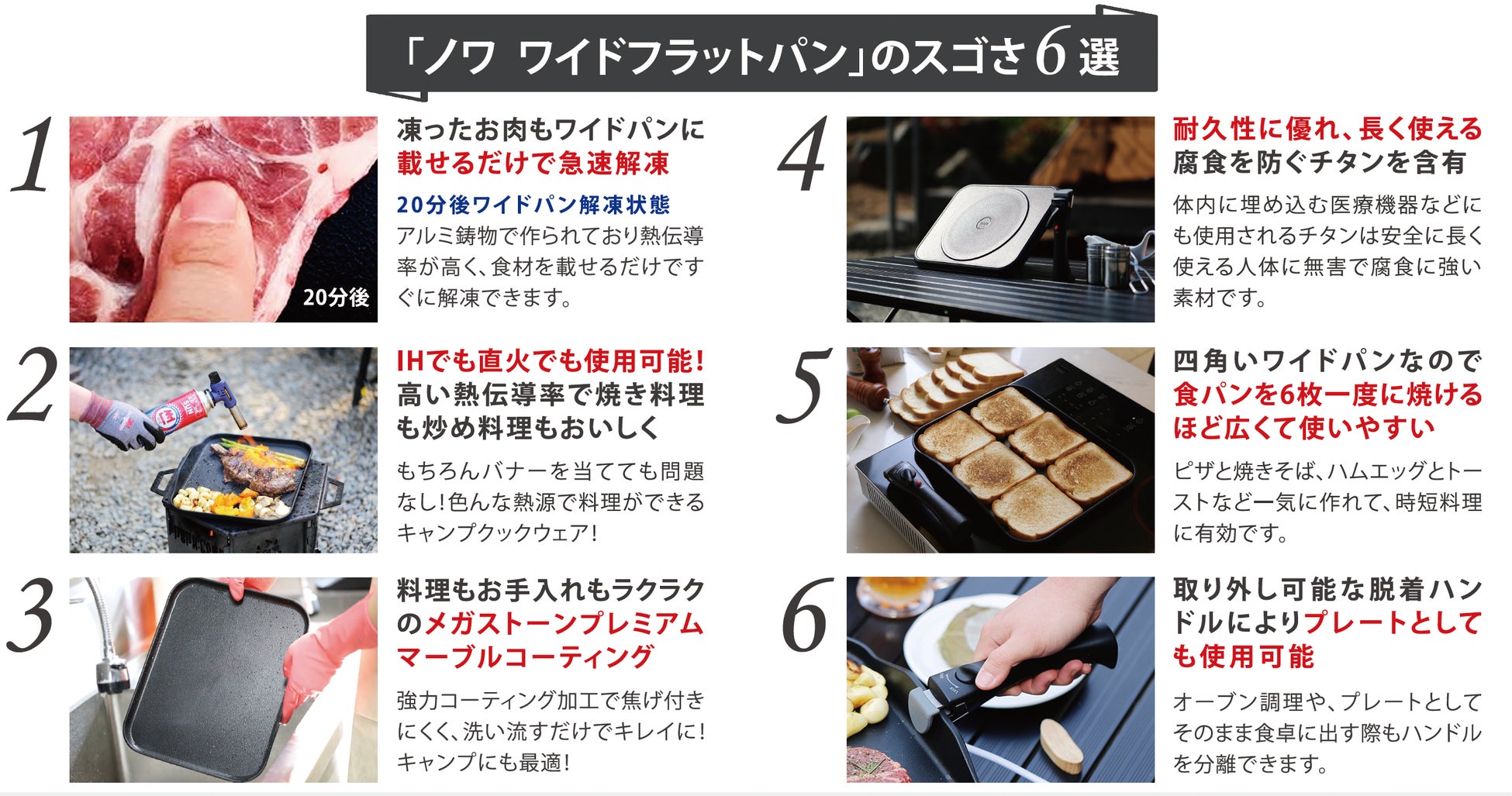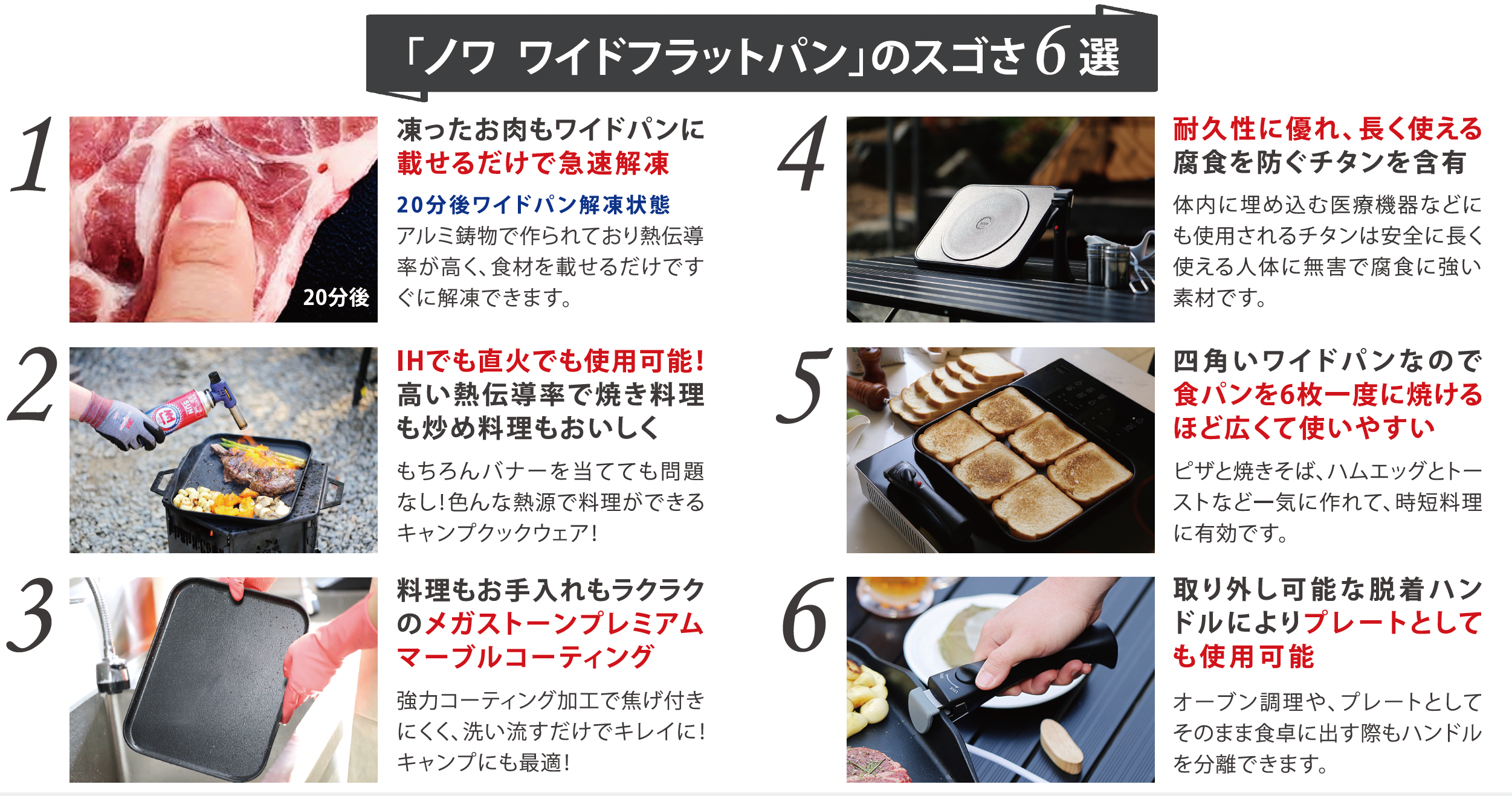 日本未上陸のドイツブランド「NOWA WIDE FLAT PAN」。熱伝導率が高いので、スピーディに加熱&冷凍肉の急速解凍もOK!