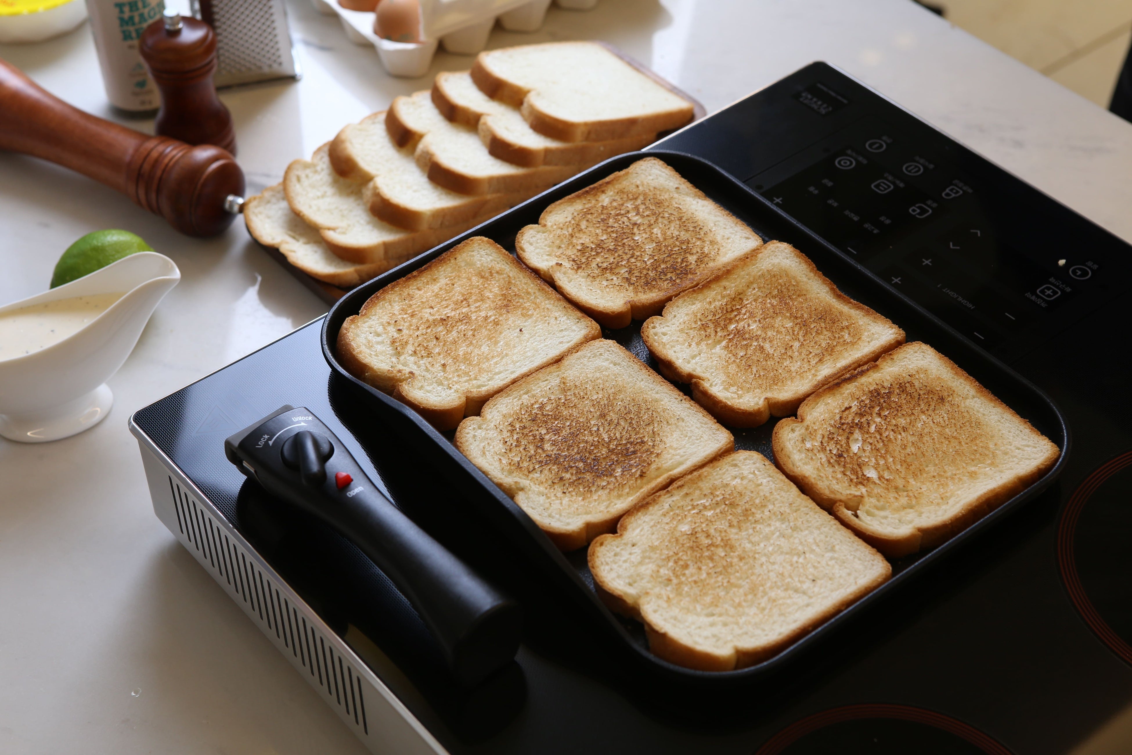 四角いワイドパンで食パン6枚を一度に!ドイツ発 キャンプにも最適。急速解凍機能付の万能ワイドフラットパンがMakuakeにて新登場