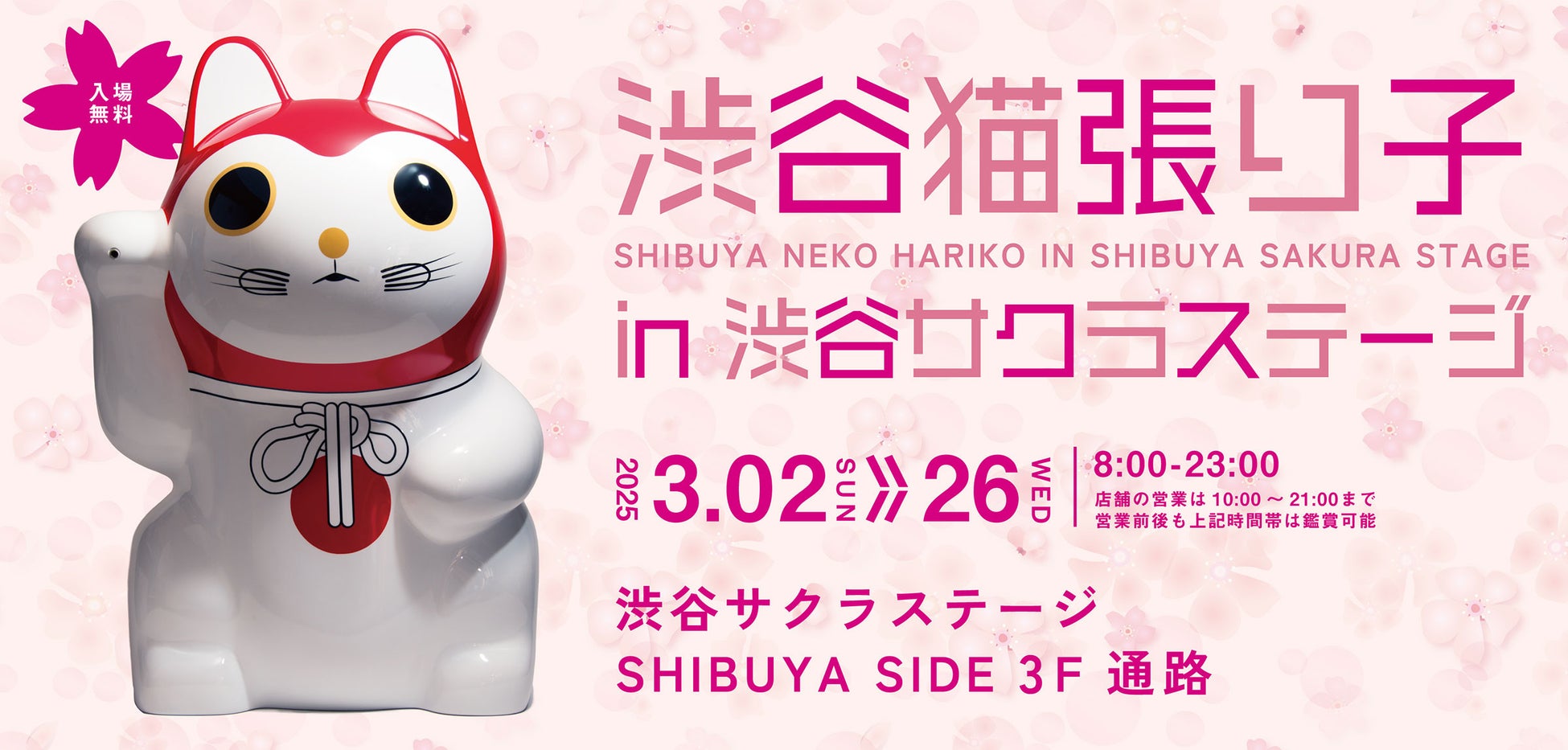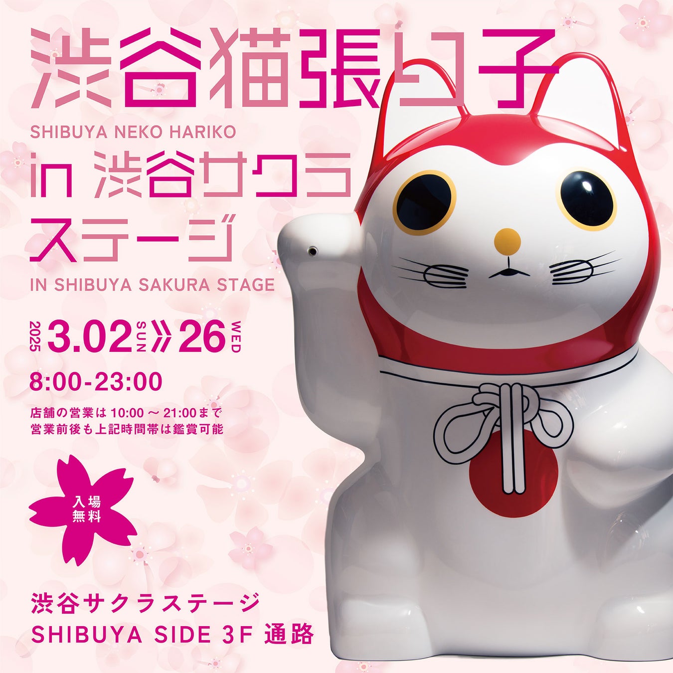 2025年3月2日より、JR渋谷駅新南改札隣接の渋谷サクラステージ3階にて現代美術家・吉田朗による立体作品「渋谷猫張り子」が展示されます。昨年のお正月、渋谷の地で見事に蘇った姿をお披露目して以来はじめての公開となる今回の舞台は、桜が美しい季節の渋谷サクラステージです。初日には記念ステッカーを配布予定!入場は無料です。ぜひご来場ください。