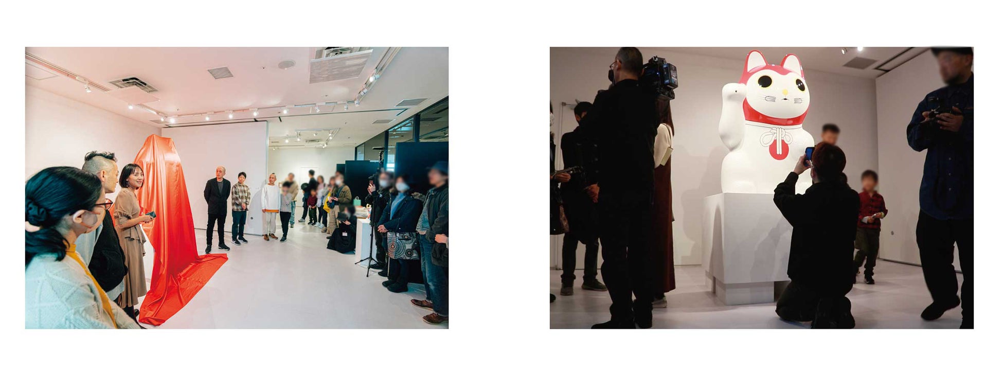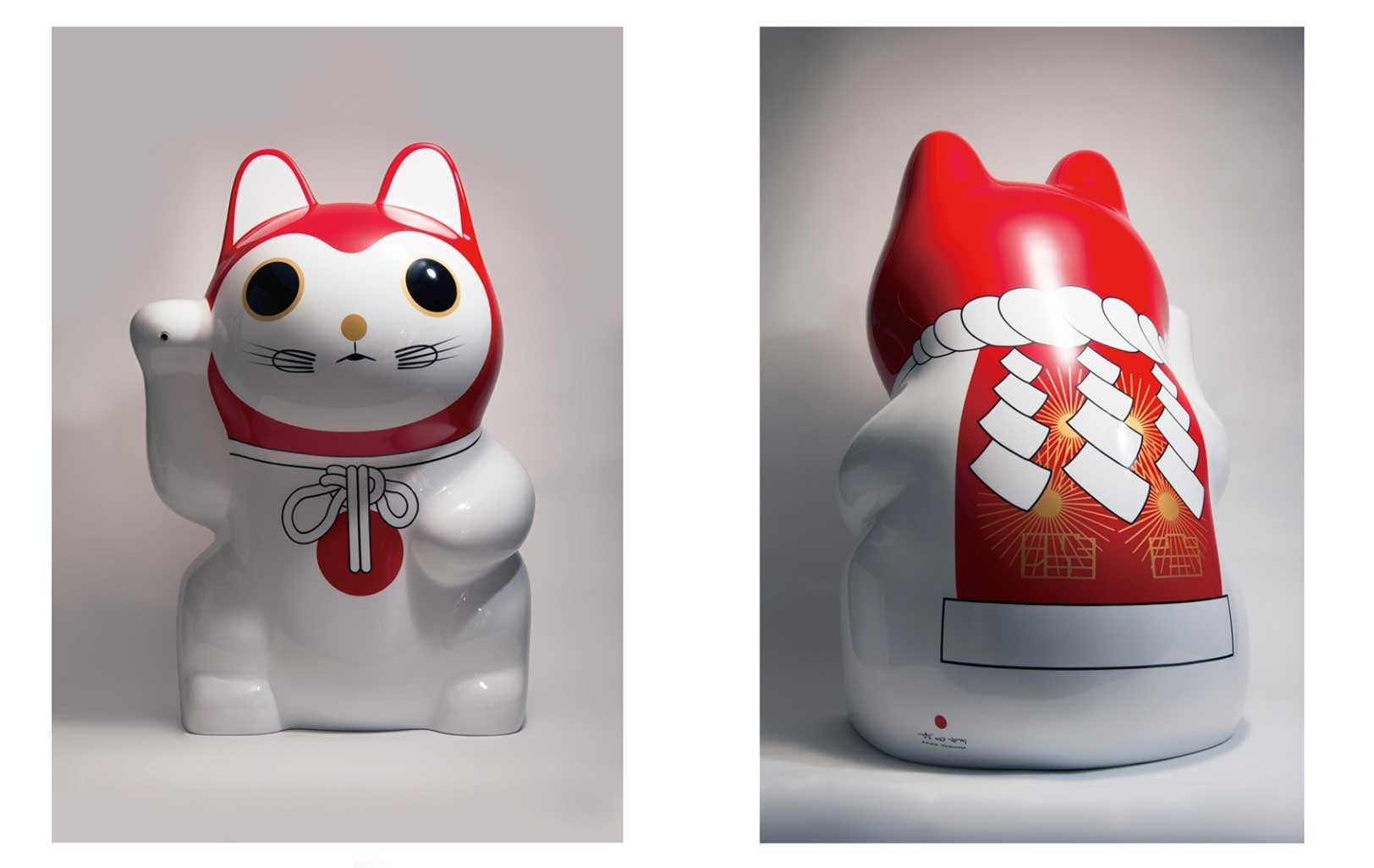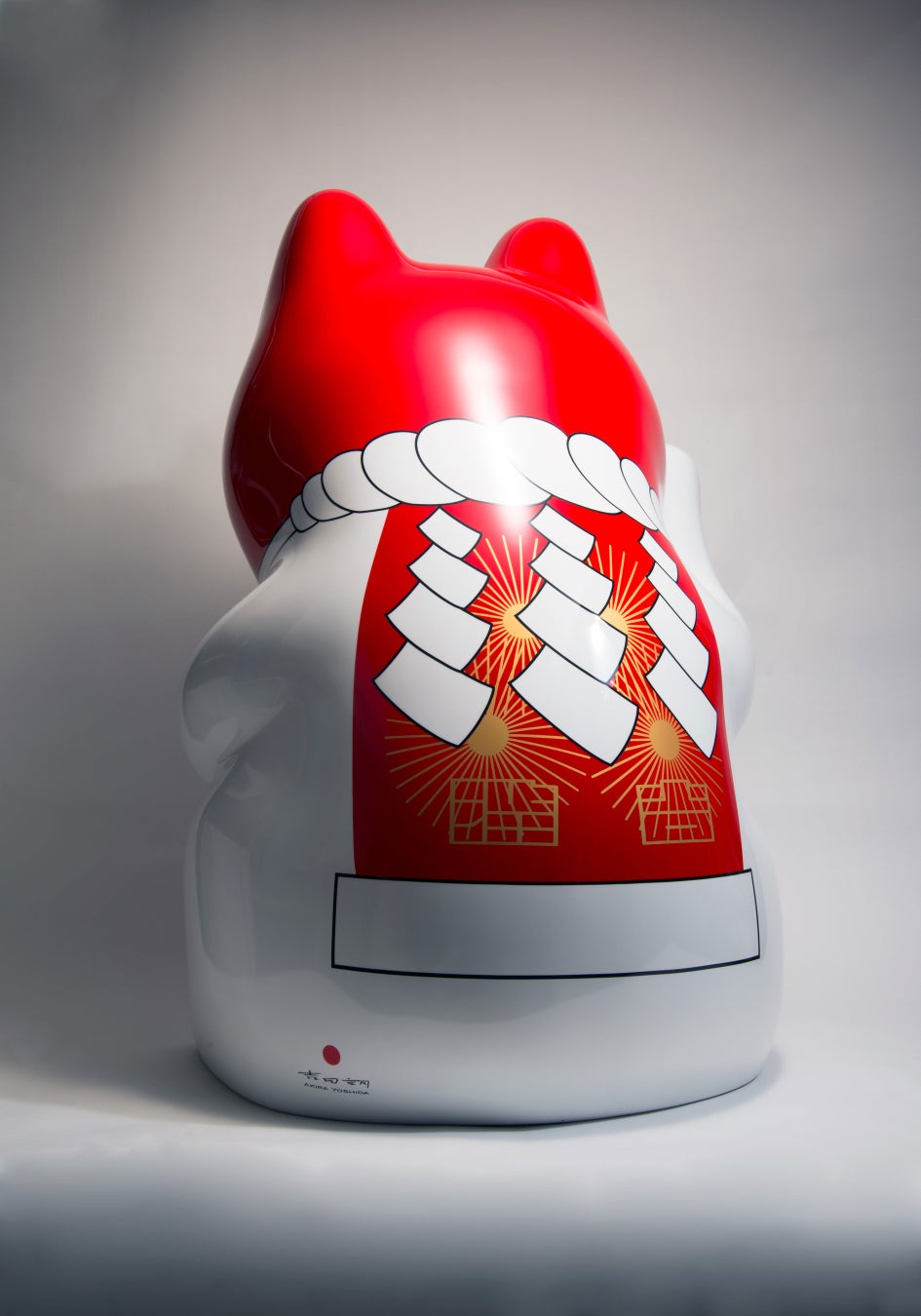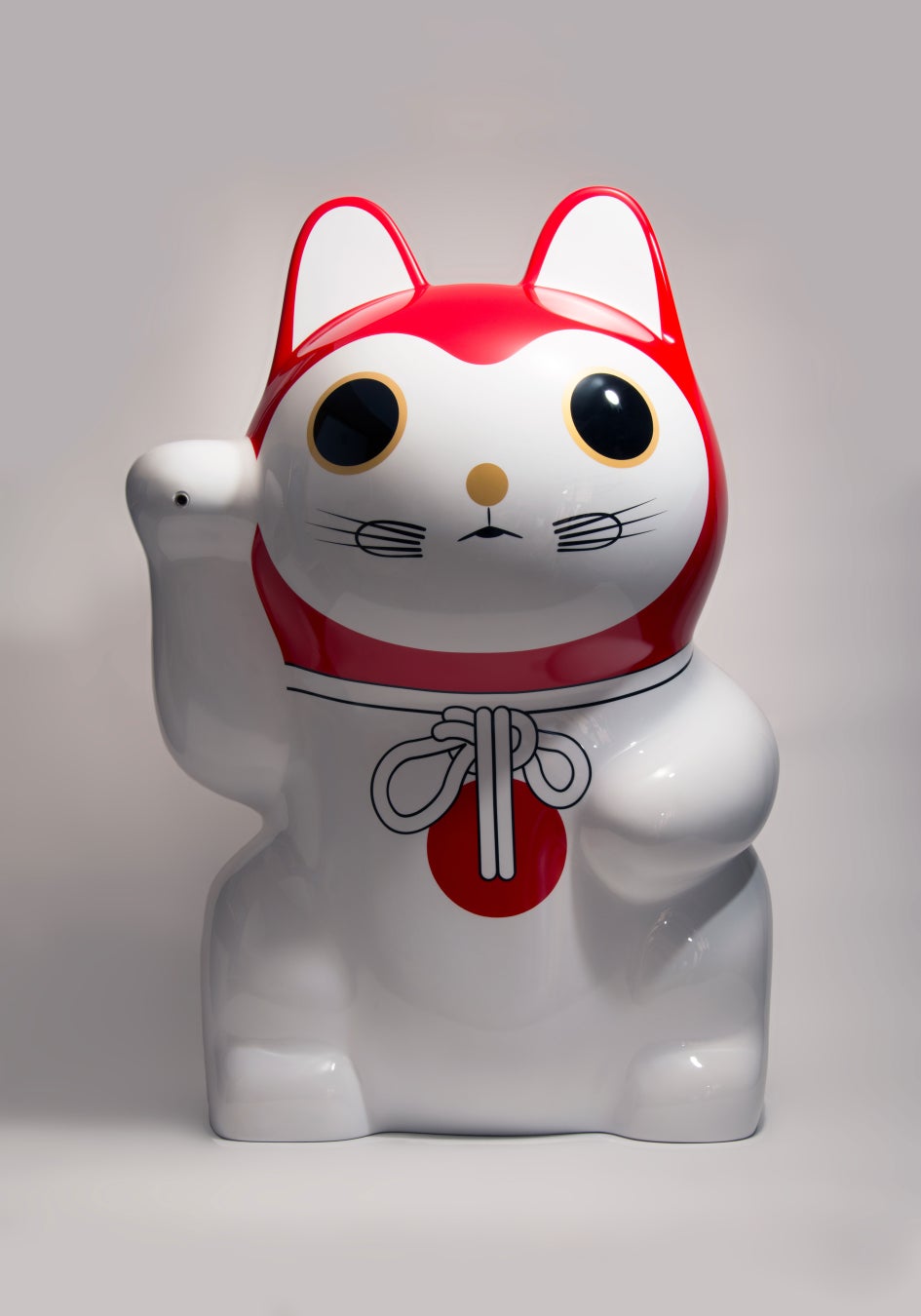 「渋谷猫張り子」は現代美術家の吉田朗による招き猫の姿をしたオリジナルの立体作品です。渋谷には「ハチ公像」という長きに渡り人々に愛され続ける彫刻があります。ハチ公に敬意を表しつつ、渋谷の新しいシンボルとなることを目指して精魂込めて制作された作品は2020年春、渋谷にある商業施設内に設置されました。しかし、2022年に全く別の姿に変えられた状態で展示されていることが発覚。紆余曲折を経て、同作品は1万筆を超える一般の方々による署名の後押しにより作者の元に帰ってきました。その後、7ヶ月に渡るアーティスト本人の懸命な修復作業により、見事に元の姿に蘇りました。