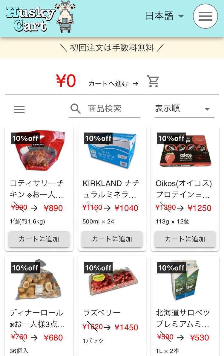 など、現在ですと、2023年10月17日(火)〜10月31日(火)までの間、Huskycart(ハスキーカート)内の全コストコ商品が10%OFFで販売されております。