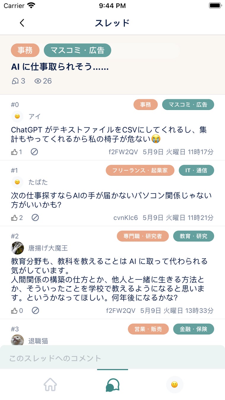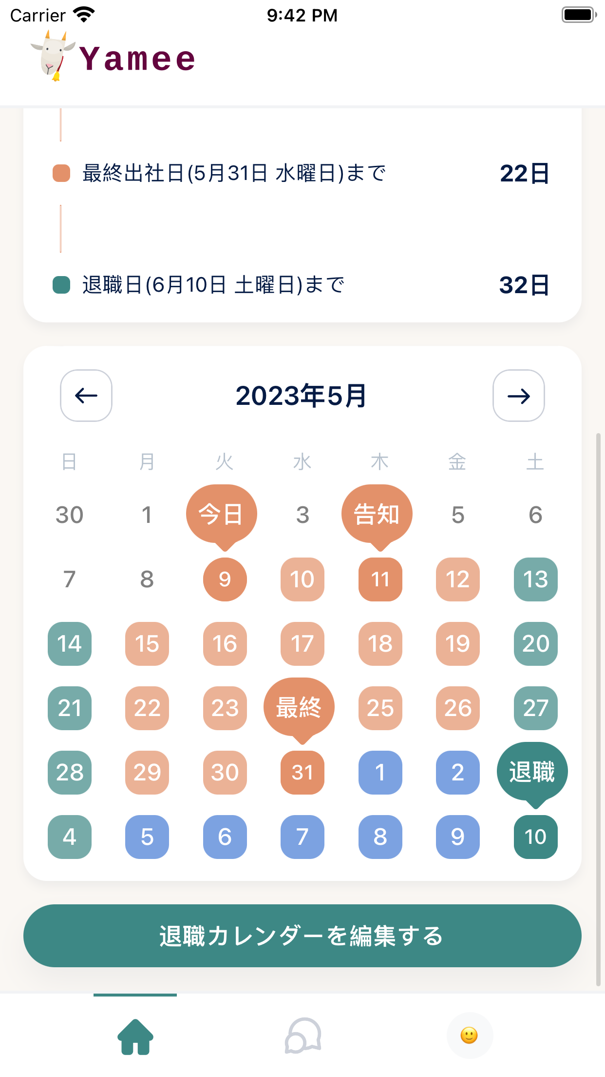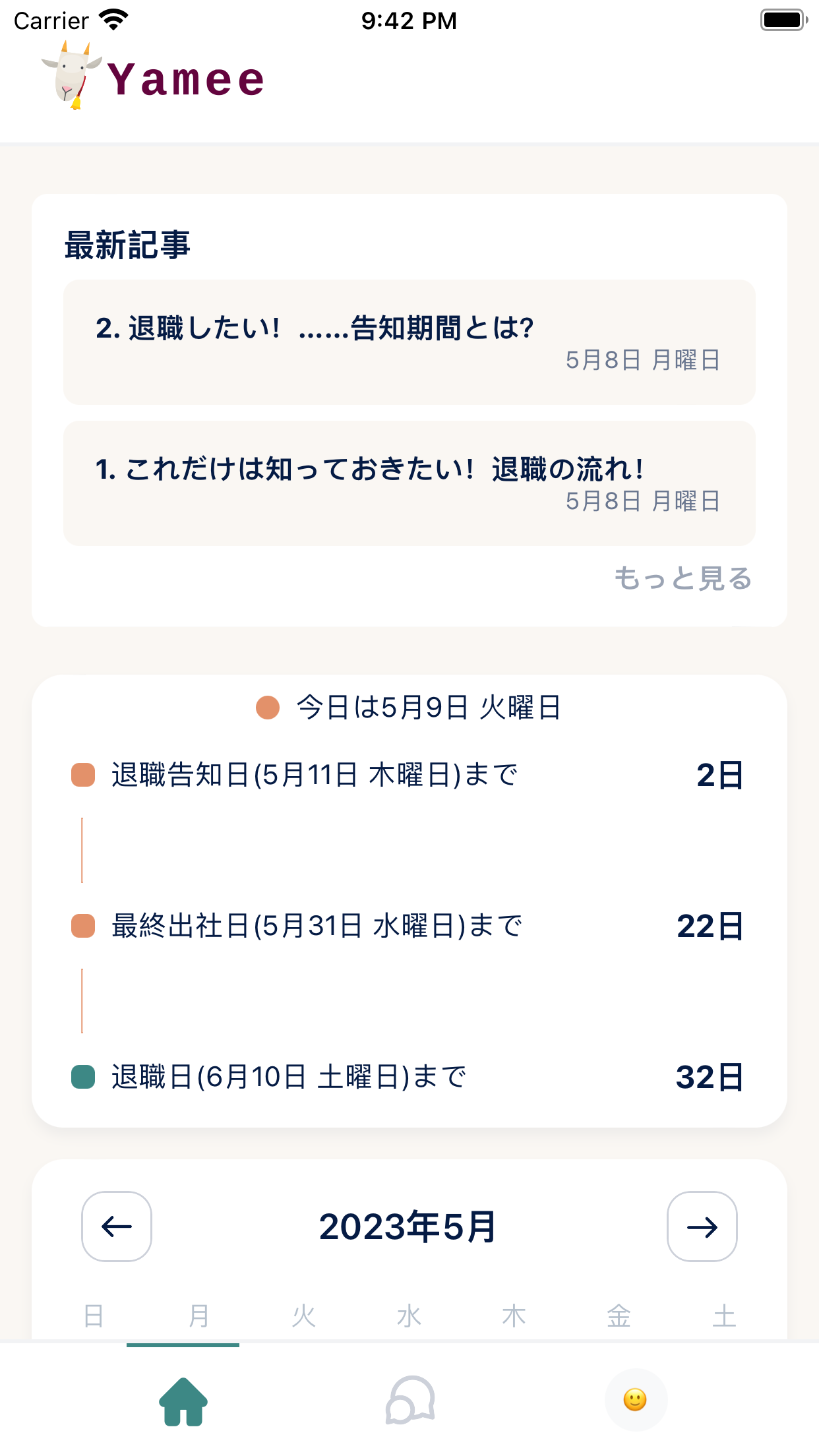 退職アプリ・ヤメー(https://www.afterai.dev/ja/yamee)には、退職までの予定を立てるカレンダー機能や、退職希望者同士で情報交換をする掲示板機能がございます。匿名でご利用いただけますので、身バレする心配なく本音で退職の悩みを相談したり、退職希望者同士での雑談をお楽しみいただけます。