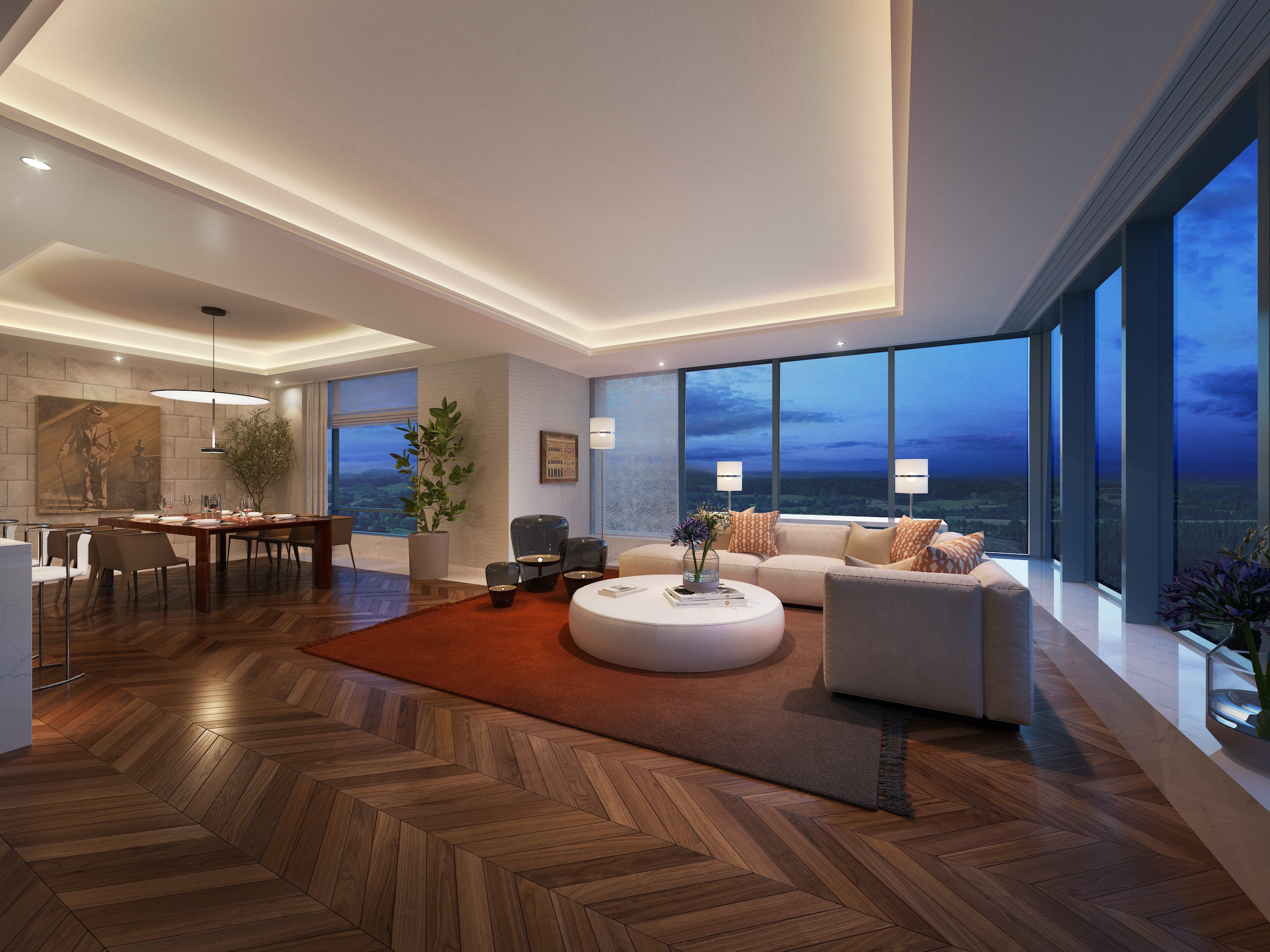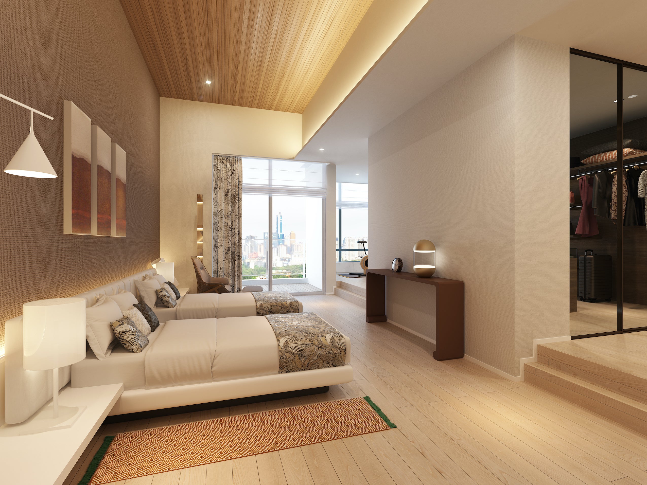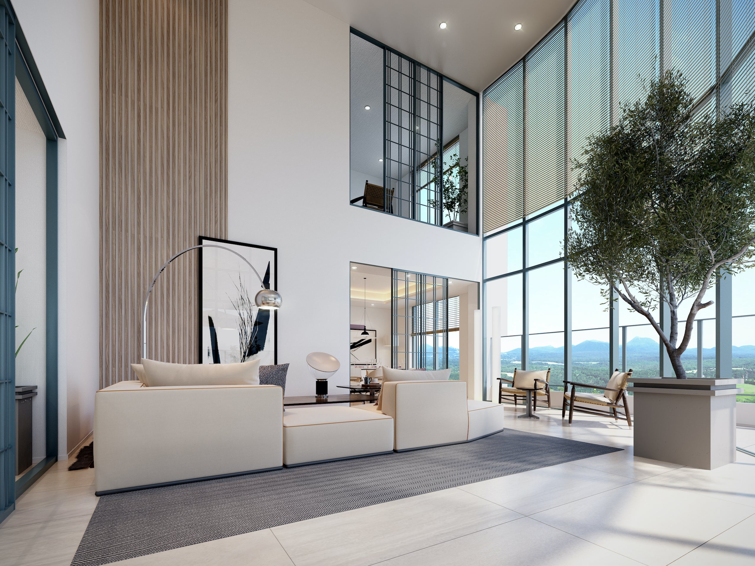 VRT-Pのステージは自然と調和する架空の都市空間。都会の景観、タワーの存在感、サスティナビリティに対応した建築の姿が、この計画に期待と高揚感を与えます。タワー内部には ”PUBLIC AREA”と、テイストの異なる二つのモデルルームを用意。モデルの一つは、都会的に洗練されたモダンインテリアが、高級感溢れる空間を演出する ”URBAN ELEGANCE”。もう一つは、海外の富裕層から人気が高まりつつある、自然感と和を基調としたインテリアテイスト ”CITY RESORTS” が来訪者をお迎えします。