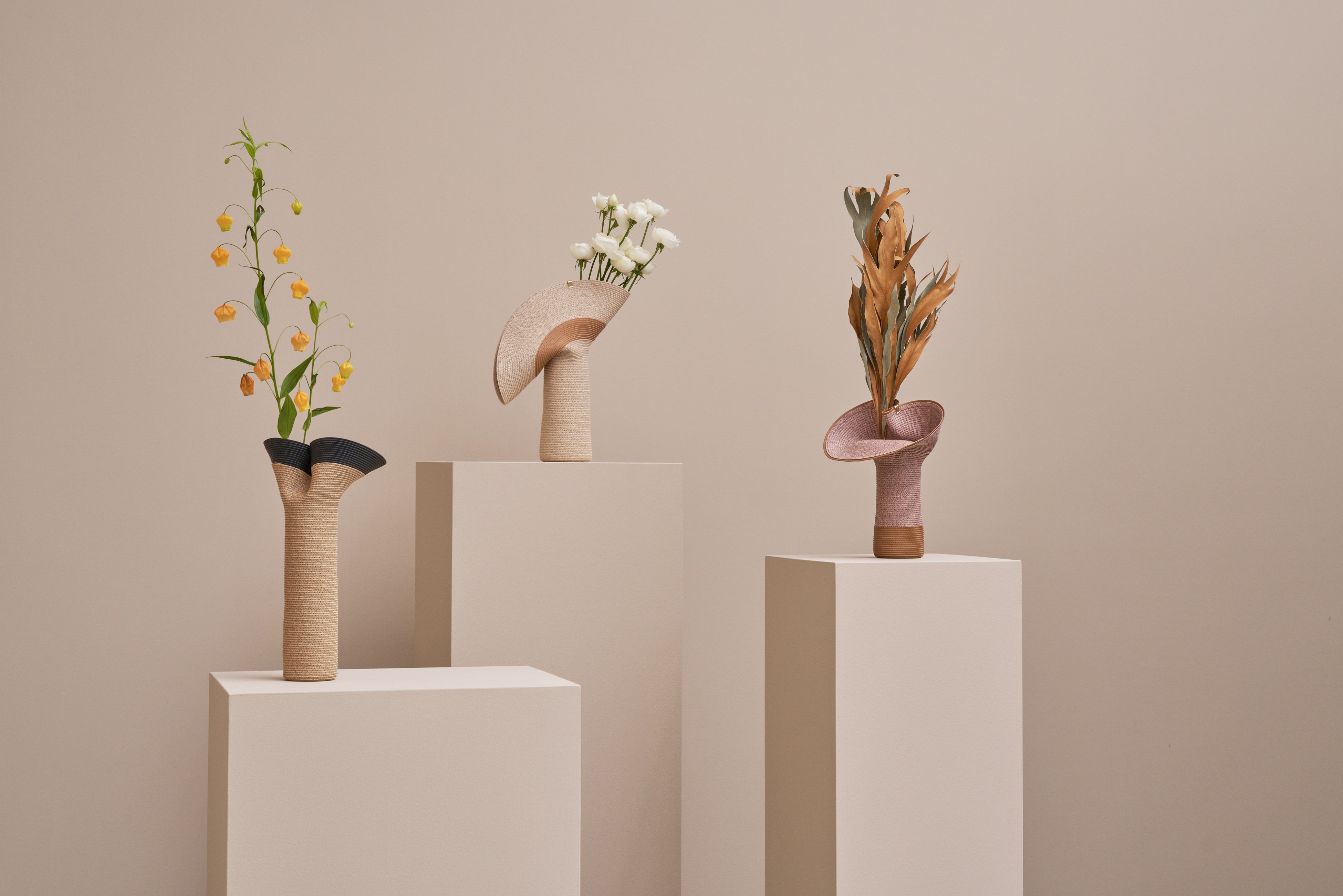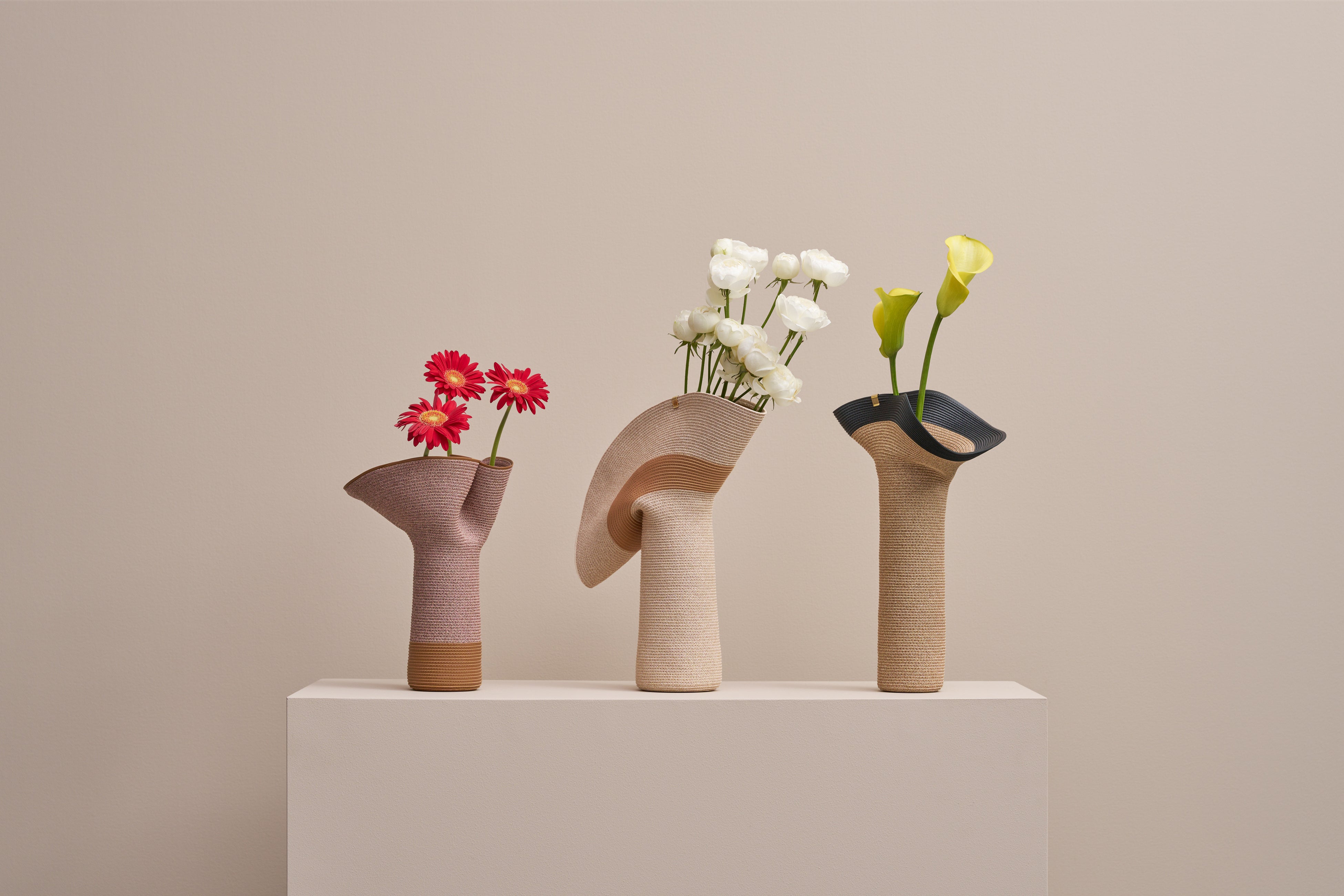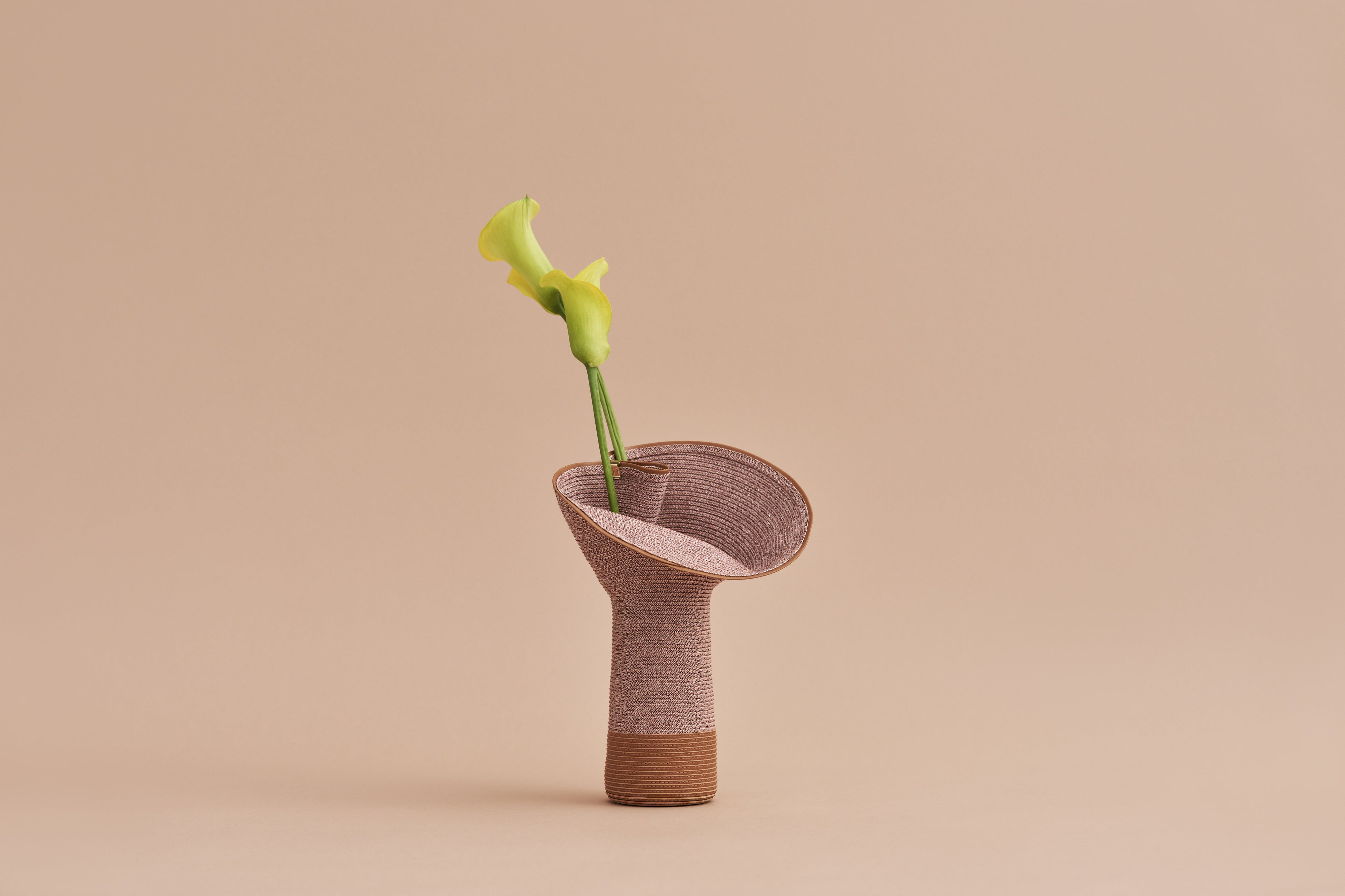 革の端材と和紙を織り込んだ素材を使用し、アップサイクリングのコンセプトから生まれた「Lapel(ラペル)」フラワーベースコレクション