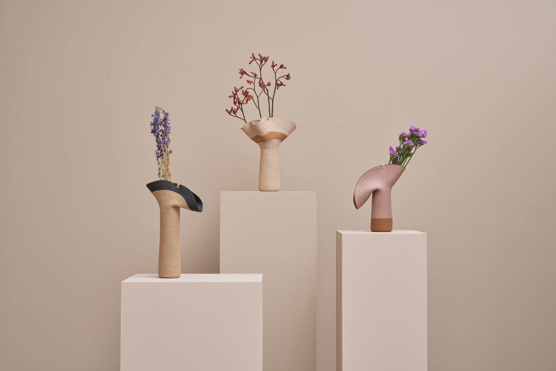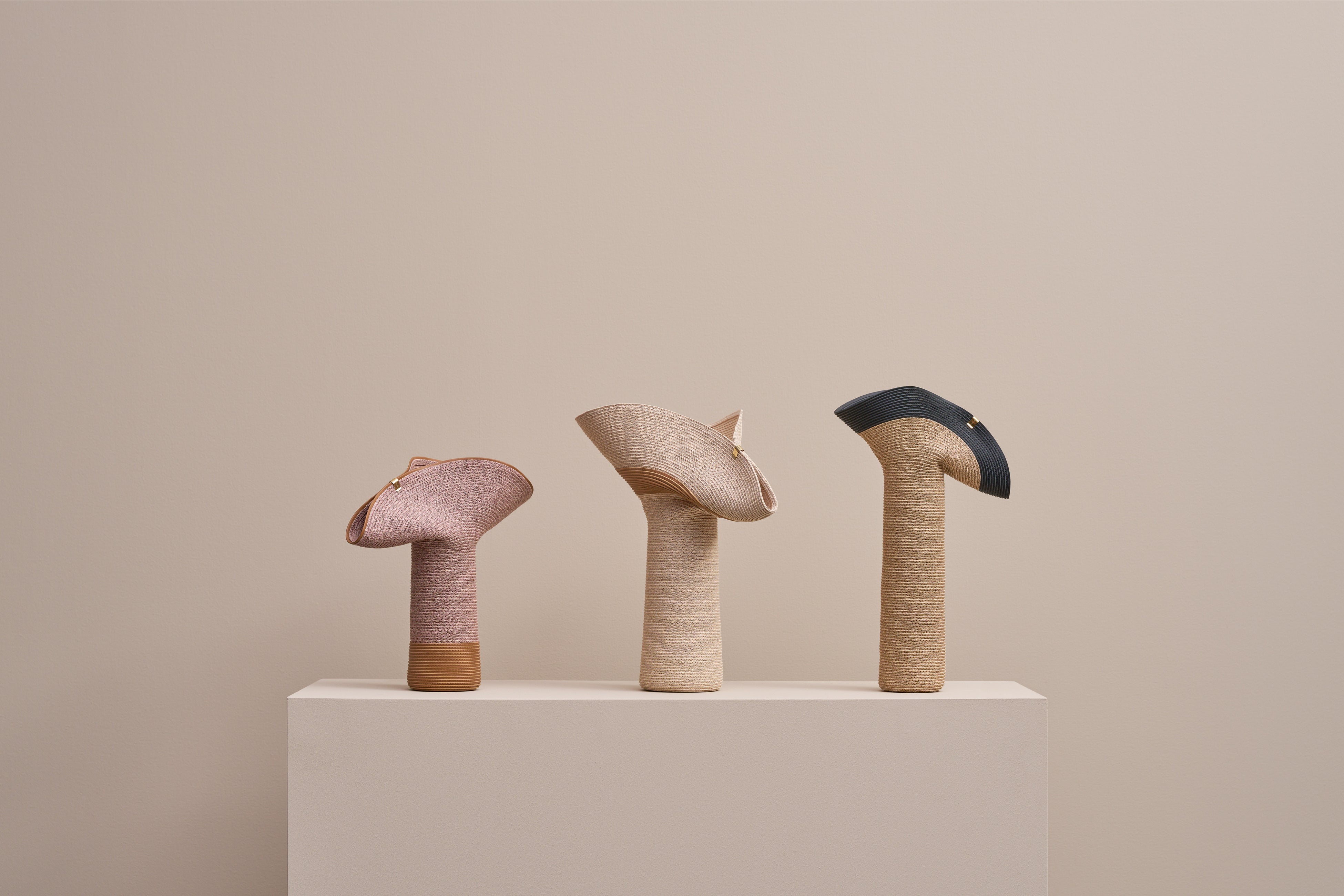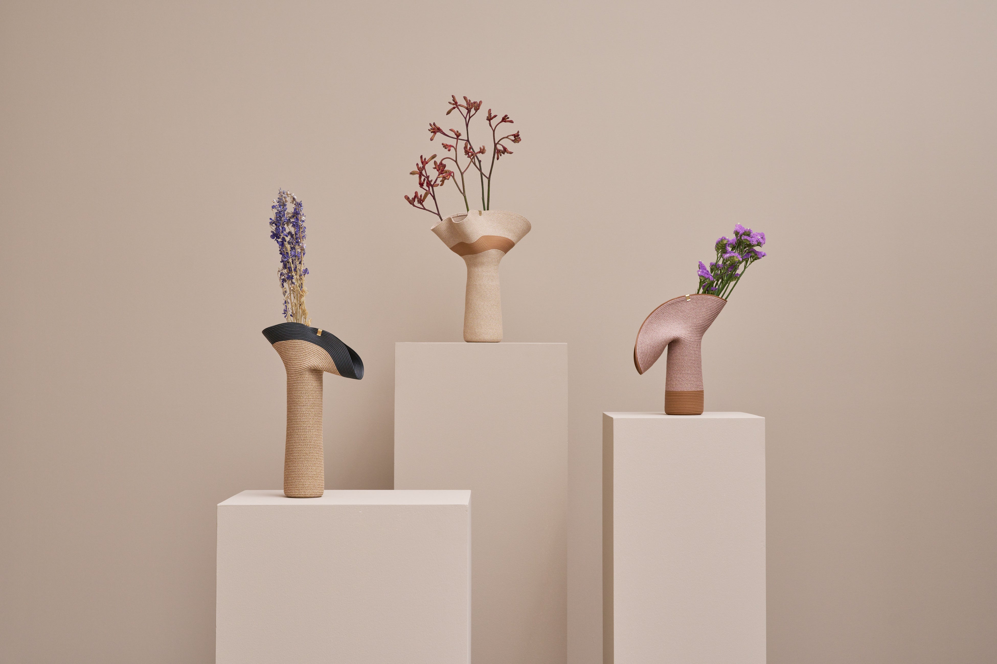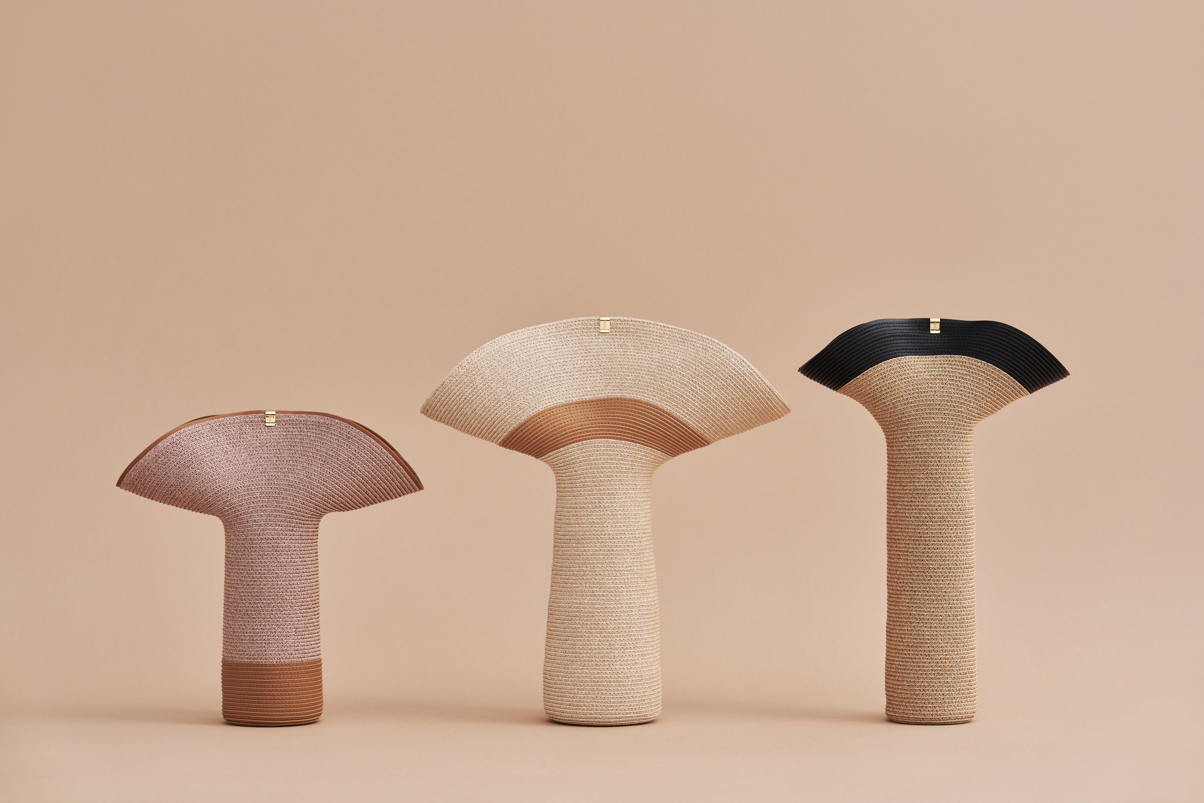 革の端材と和紙を織り込んだ素材を使用し、アップサイクリングのコンセプトから生まれた「Lapel(ラペル)」フラワーベースコレクション