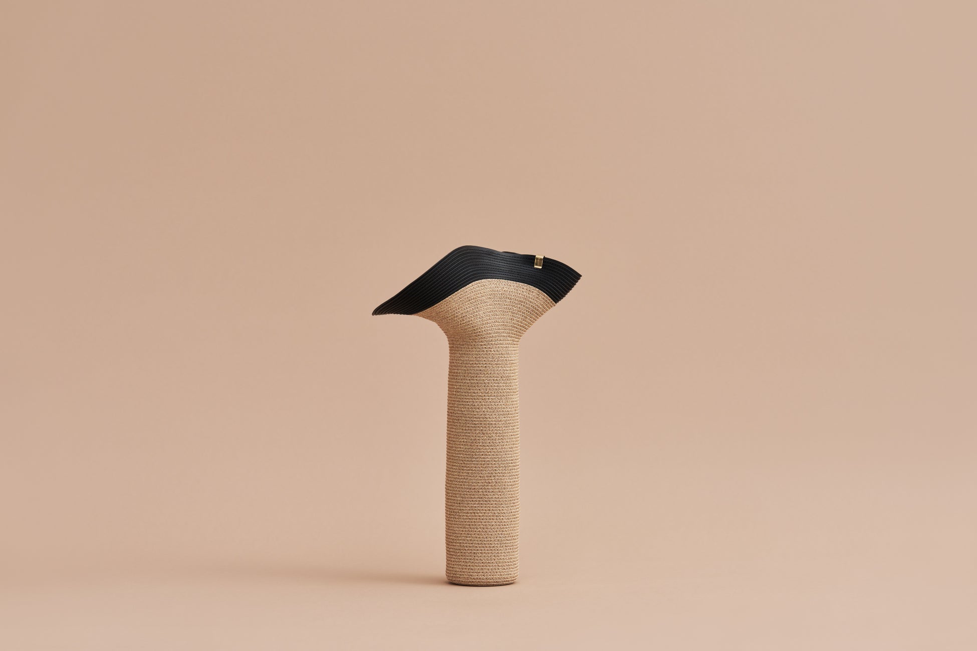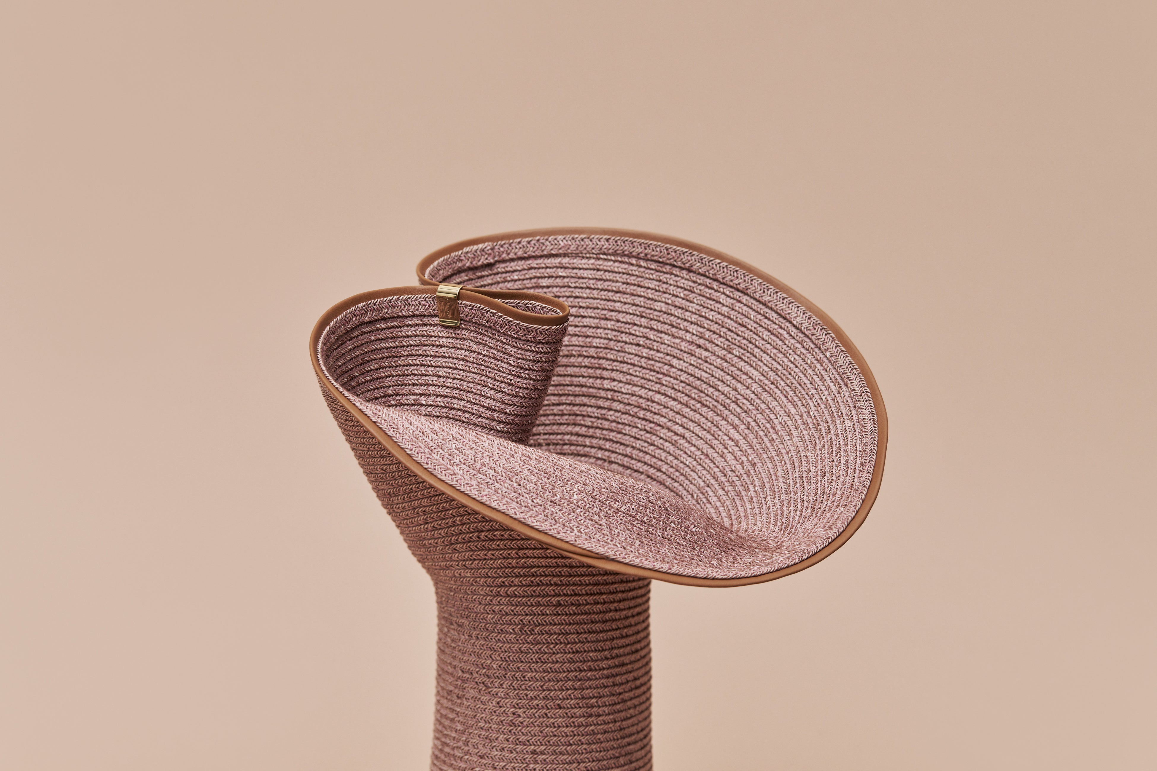 フランスと日本のメゾンが誇るそれぞれの職人技が出会い、生まれたMOBJEの「Lapel(ラペル)」を元にしたフラワーベースコレクション。革製品と帽子製造の二つのサヴォア・フェール(匠の技)、そして革と紙の繊維という異なる二つの素材を結び付けた、新鮮なクラフツマンシップを感じさせる作品。