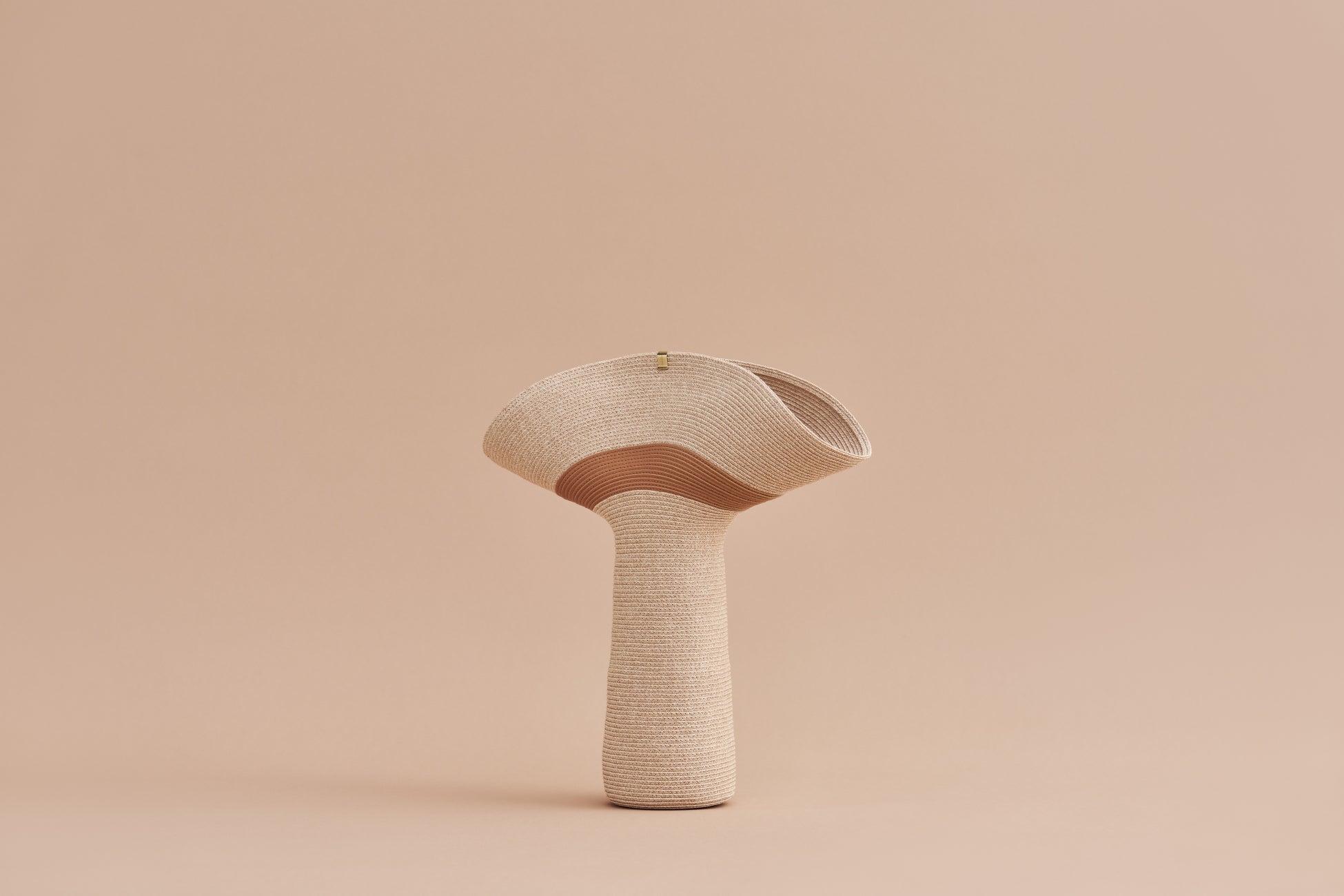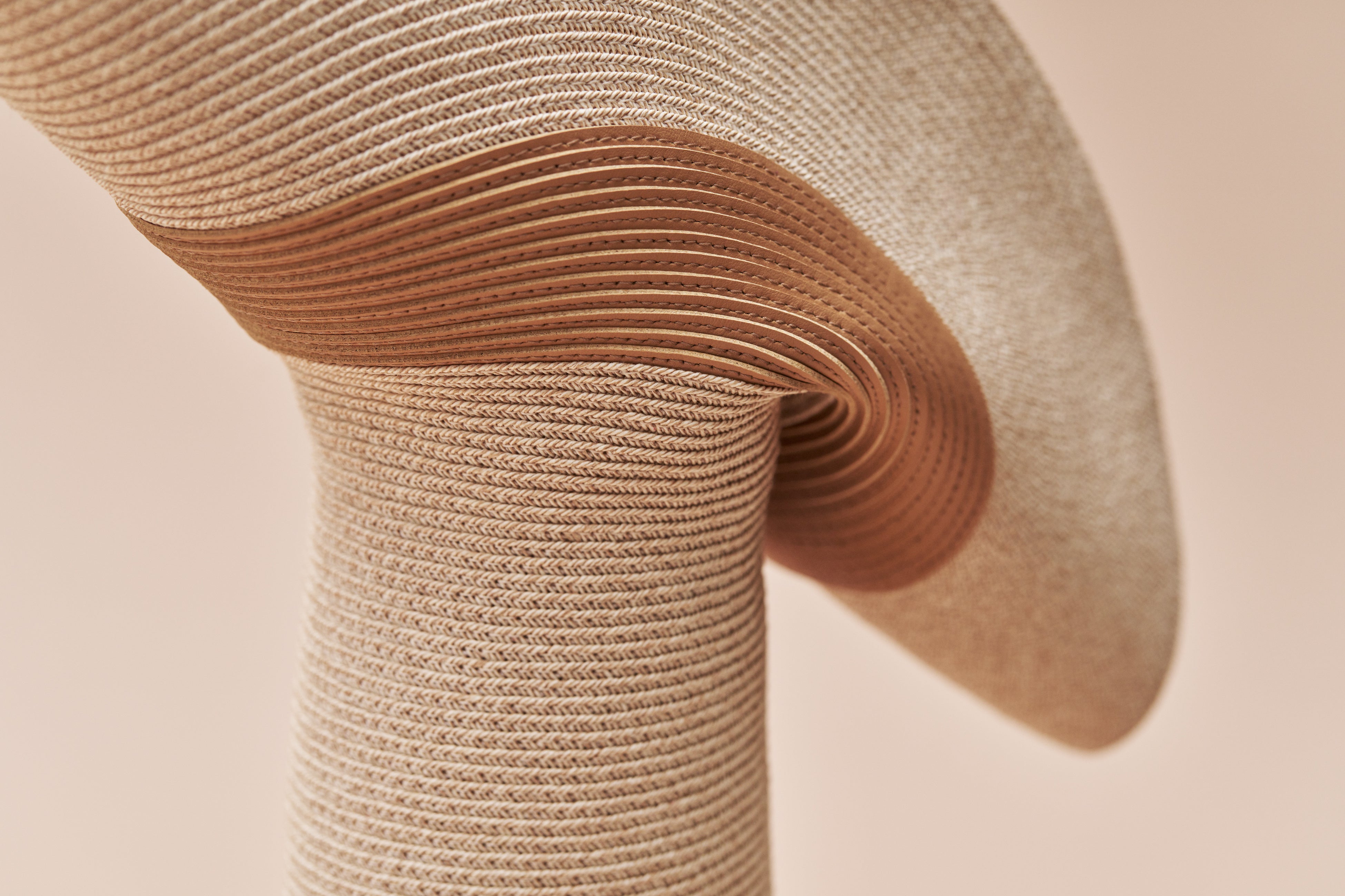2019年に垣根一允氏と山本真也氏によって創業された「MOBJE」。広島県尾道市を拠点とする家業の「藤井製帽株式会社」から受け継いだ帽子製造におけるや素材を、新たな視点で見つめなおし制作するインテリアアートブランド。伝統的な職人技に新たな用途を見出し、豊かな技術から時代にふさわしい美しさを引き出すこと。それが地域伝統工芸の保存にも携わるブランドの想い。