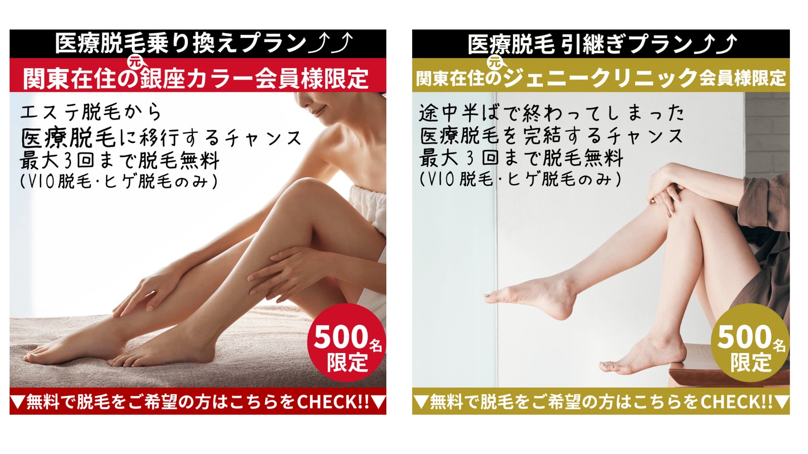 白金ビークリニック本院 脱毛サロン「銀座カラー」医療脱毛専門クリニック「ジェニークリニック」の元会員様向け脱毛救済企画をスタート https://beclinic.jp/topics/ginza/