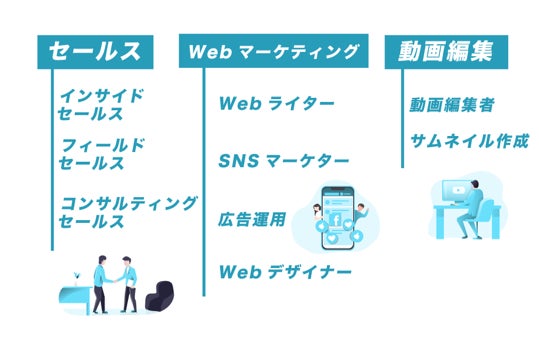 セールス・コンサルティング・WEBマーケ・WEBデザイン・動画編集など