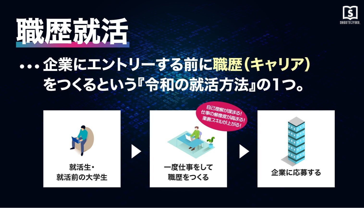 『仕事塾』をリリースした背景:『職歴』をつくり自信を持って就職活動にのぞめる学生を増やすため