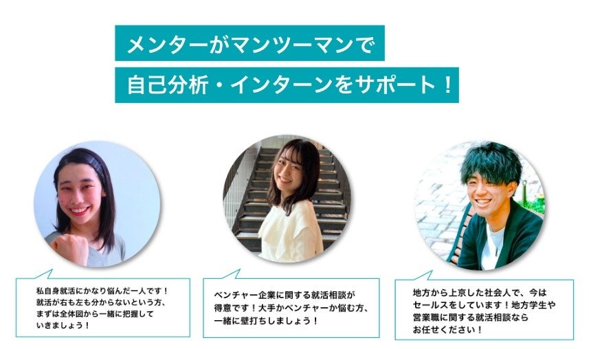 ①自己分析サポート:メンターがマンツーマンで自己分析・インターンをサポート