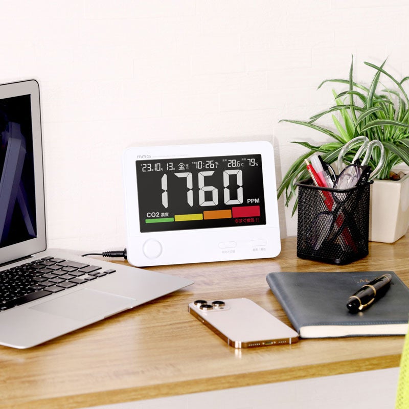 ヒトに快適な室内環境づくりをサポートする二酸化炭素(CO2)測定モニター(電波時計付き)