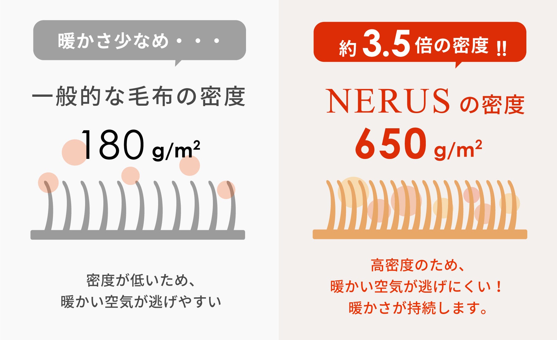 NERUSのふわもこ毛布は上質なマイクロファイバーを使用しているので極細繊維です。極細繊維は高密度に詰まっているため、温かさをより長くキープすることができます。