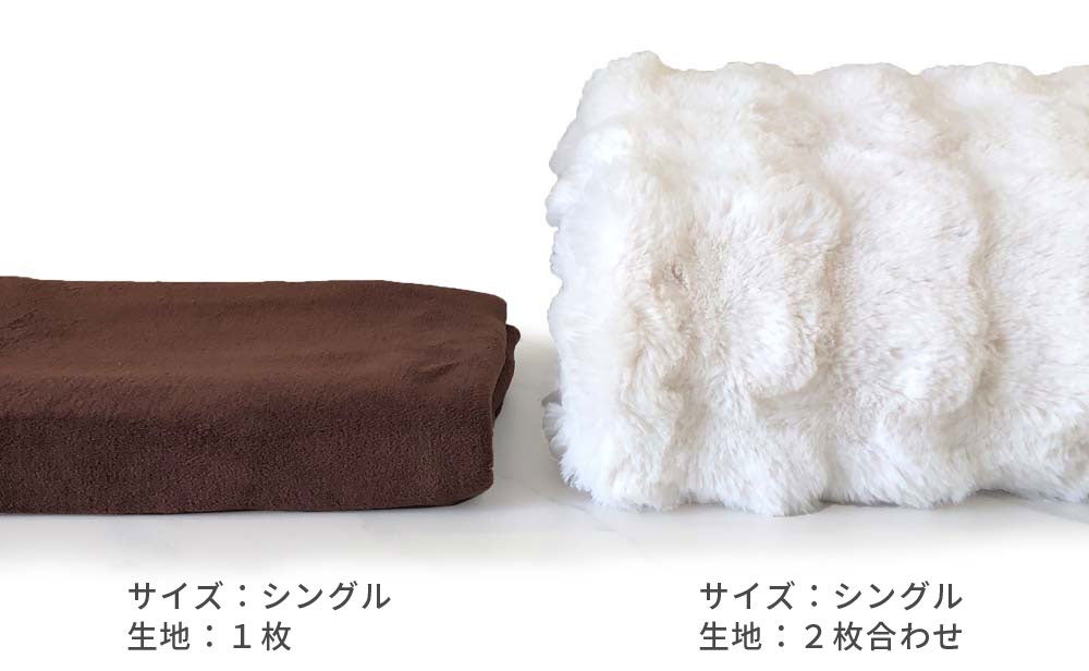 ラビットファー調とミンクファー調の生地を縫い合わせて1枚の毛布にしているので、生地と生地の間に空気の
