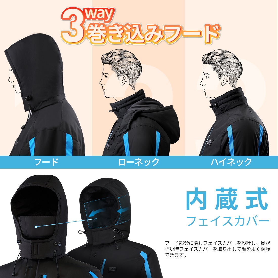 1.業界初・ボアフリース電熱ウェア・服の首、背中、腰、腹部にヒーターを内蔵:https://www.amazon.co.jp/gp/product/B0B914P686